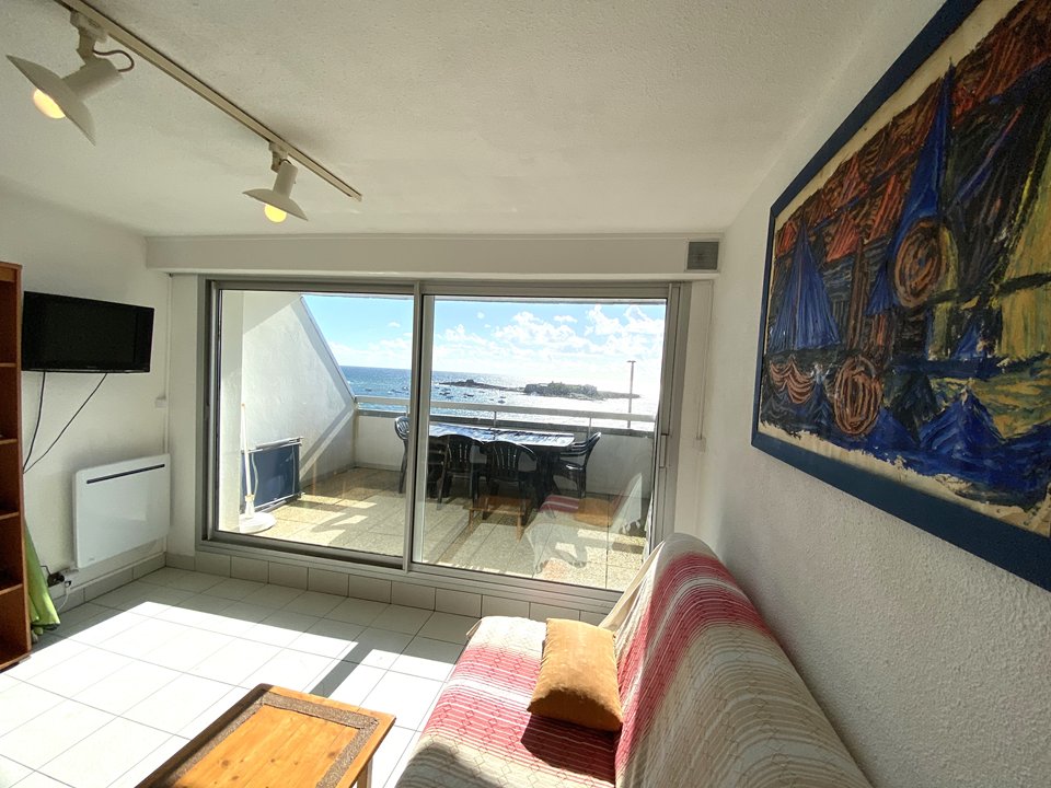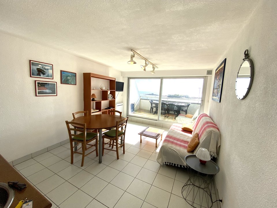 Situé au 2ème étage de la résidence "Les Loriots" à 30 m de la plage du Fort-Bloqué", cet appartement de 25m² avec magnifique vue mer se compose :