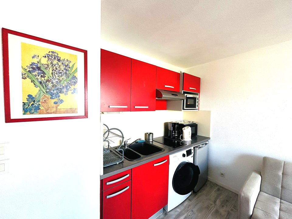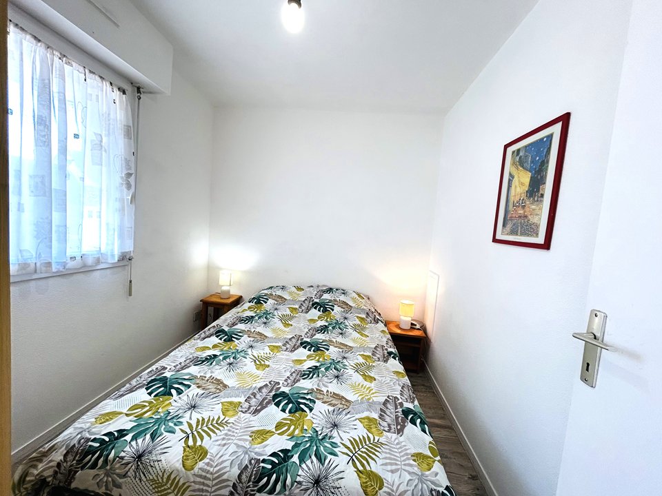 A 200 m d'une grande plage de sable fin, cet appartement de 29m² situé au 1er étage d'une petite résidence se compose comme suit :