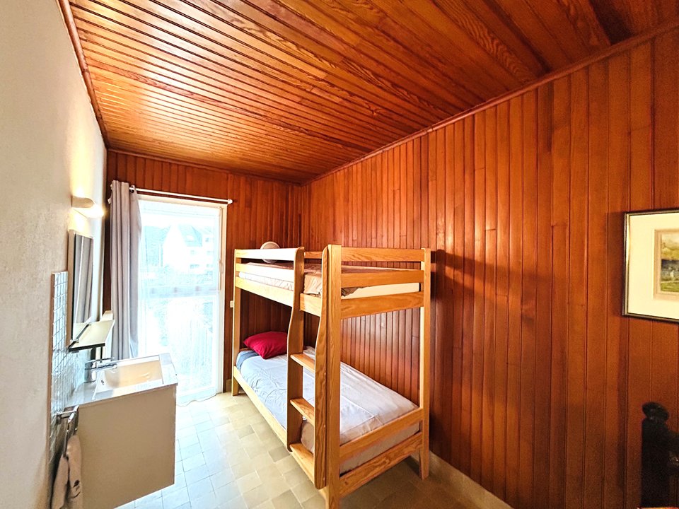 Chambre 2 : lits superposés (2 x 90), coin lavabo et placard-penderie.