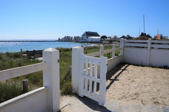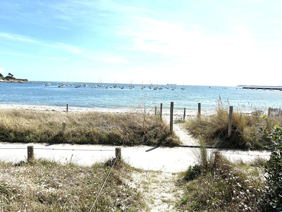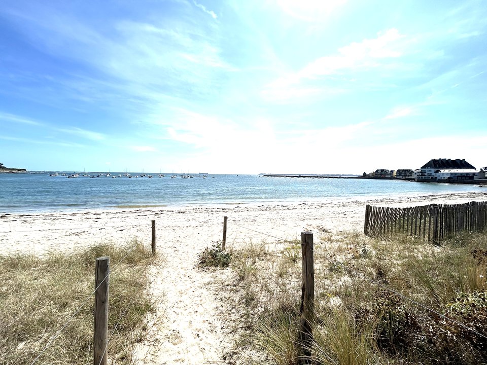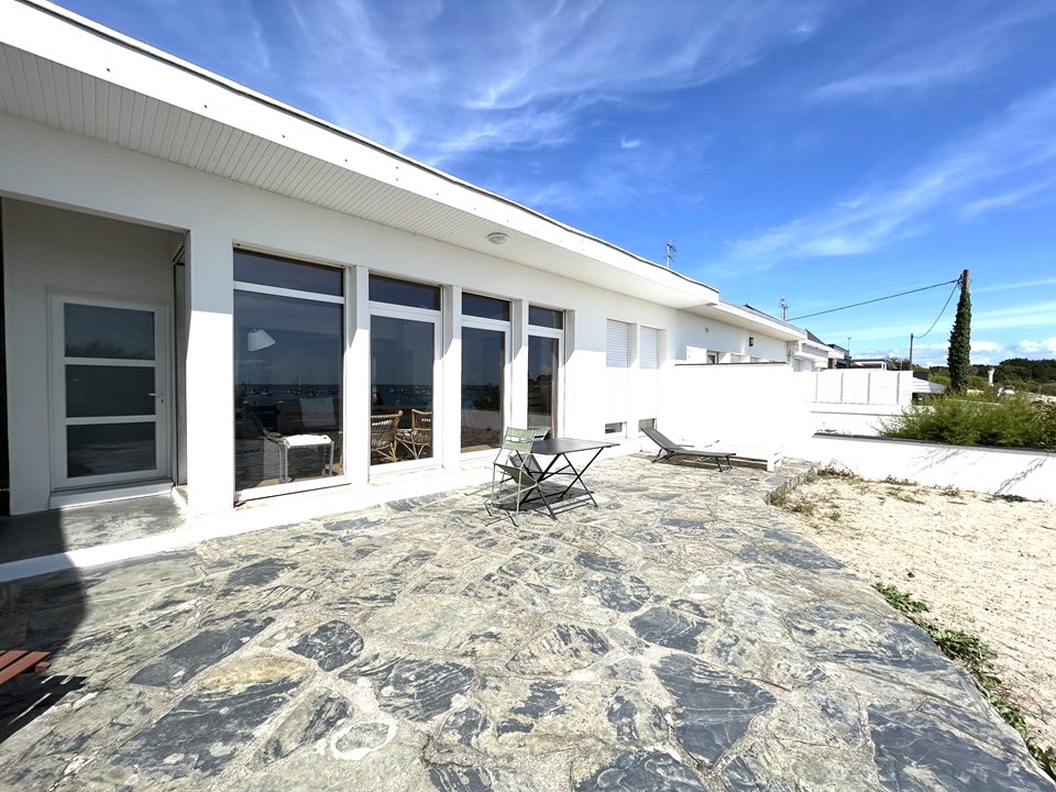Pleine vue mer avec accès direct sur la plage pour cette maison de 100 m² située à Lomener (côte de Ploemeur), disposant d'un jardin clos de 760 m2 et d'une terrasse de 50m2.