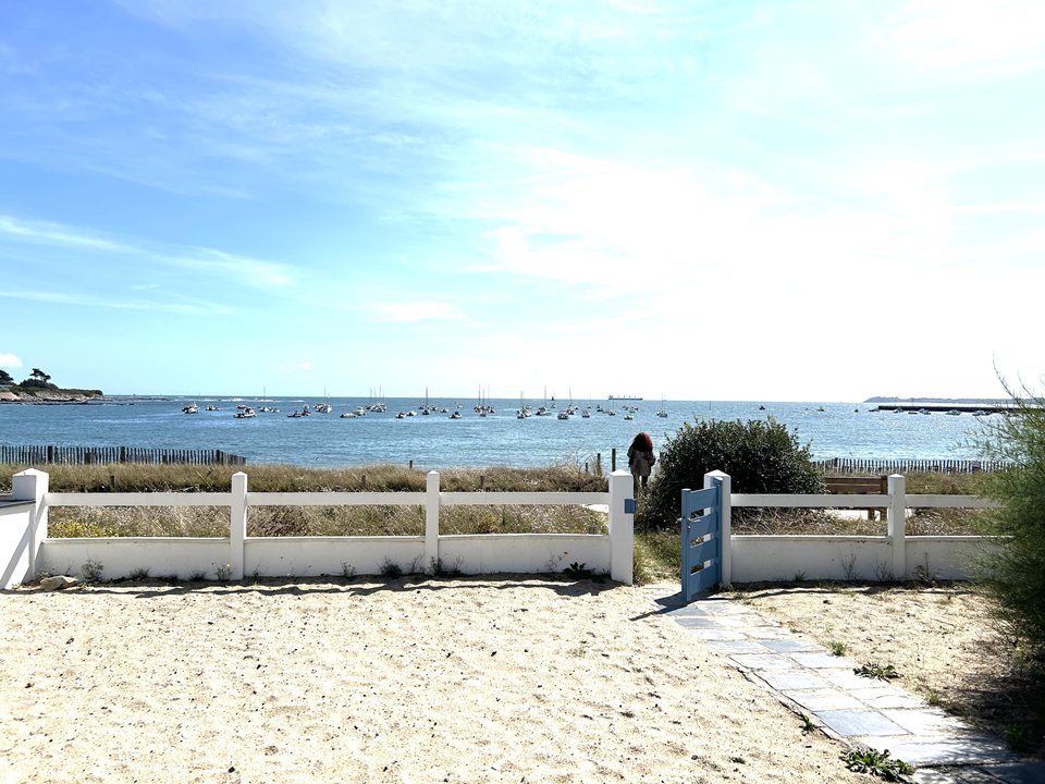 | Séjour Grande pièce de vie 1 table + 6 chaises + 1 coin salon avec banquette + fauteuils osier 1 meuble style breton + 1 armoire + 1 buffet 3 baies vitrées donnant sur terrasse et jardin de sable Pleine vue mer et accès direct à | 40 | Sud-Ouest |