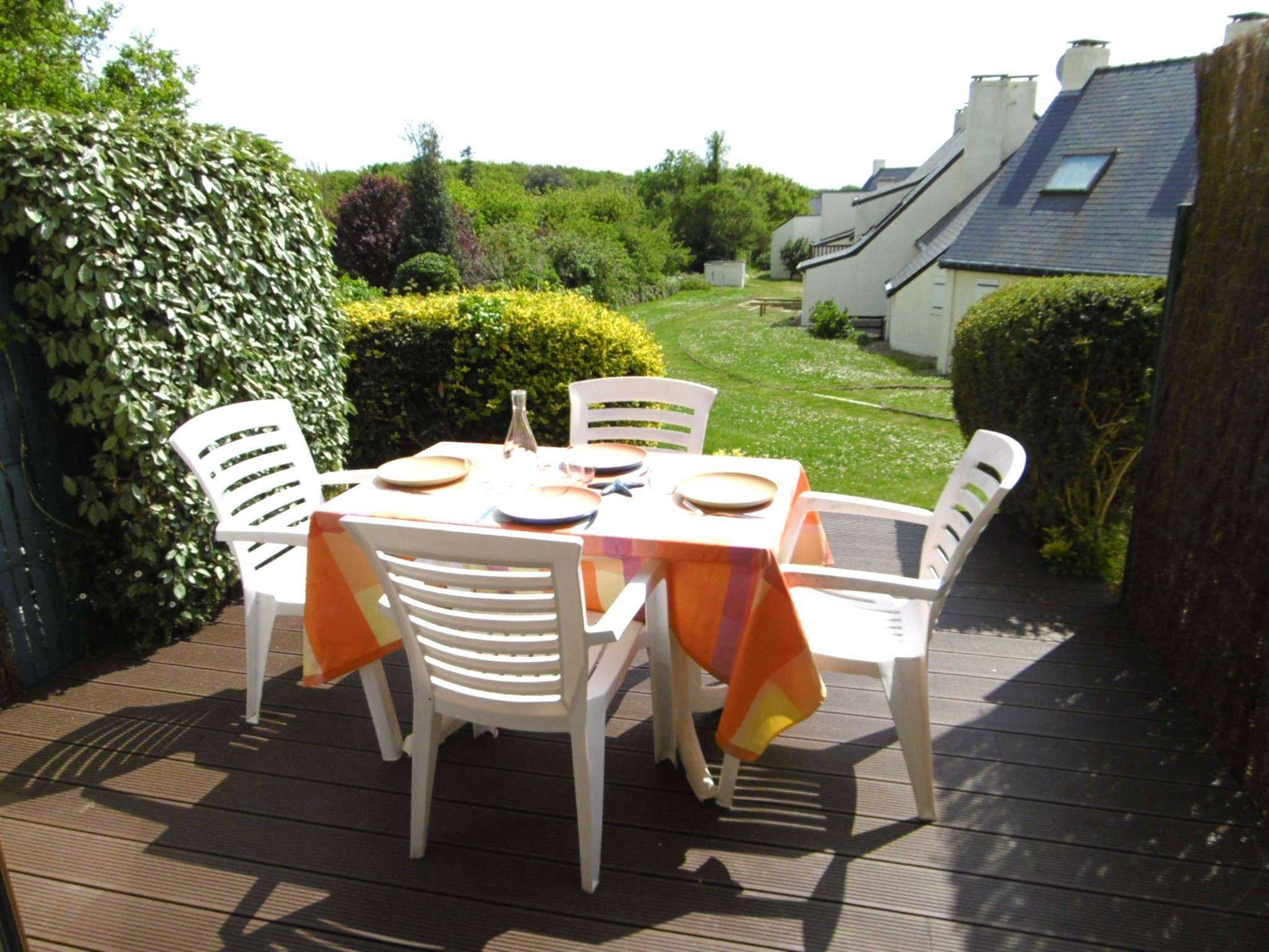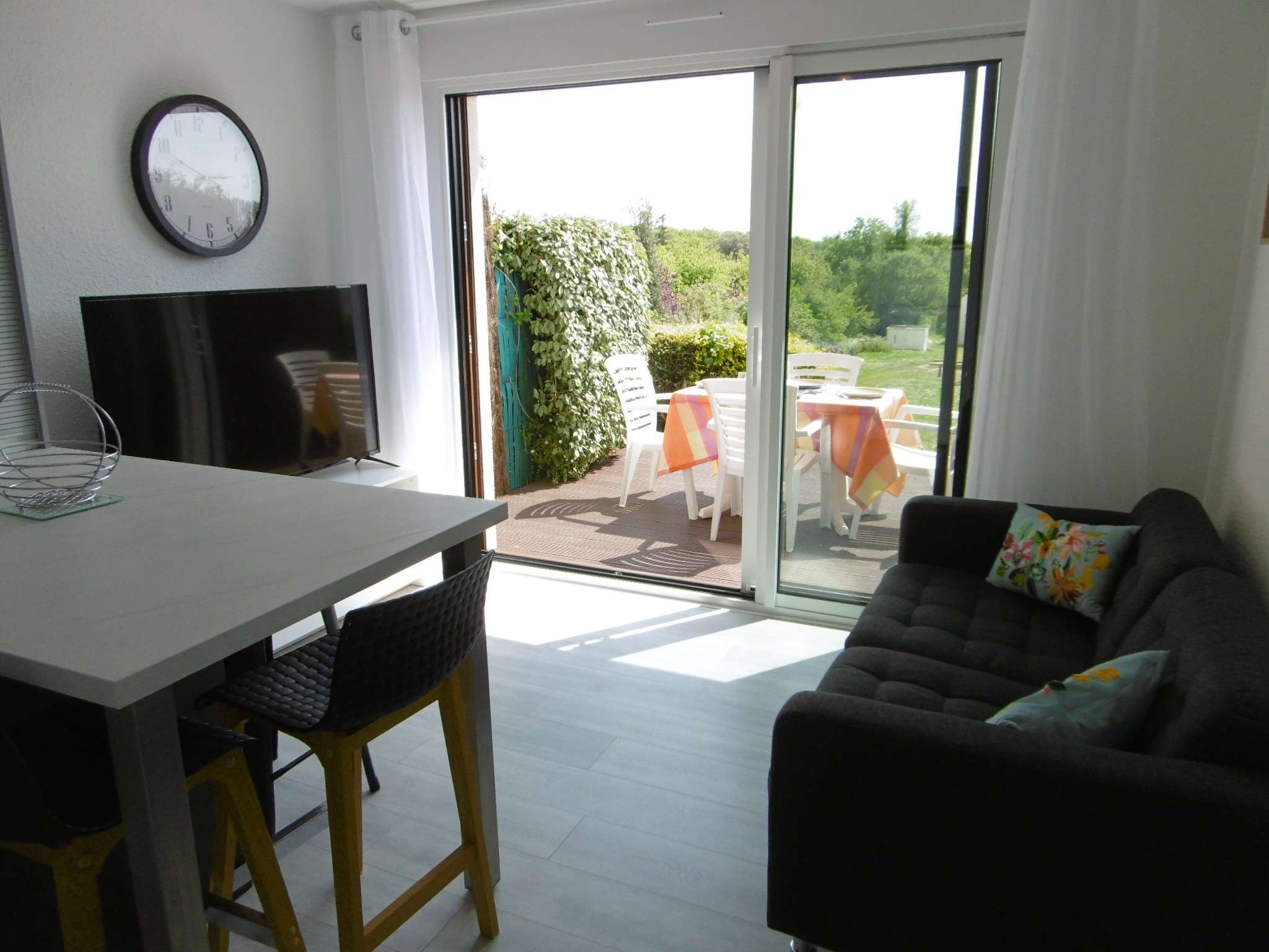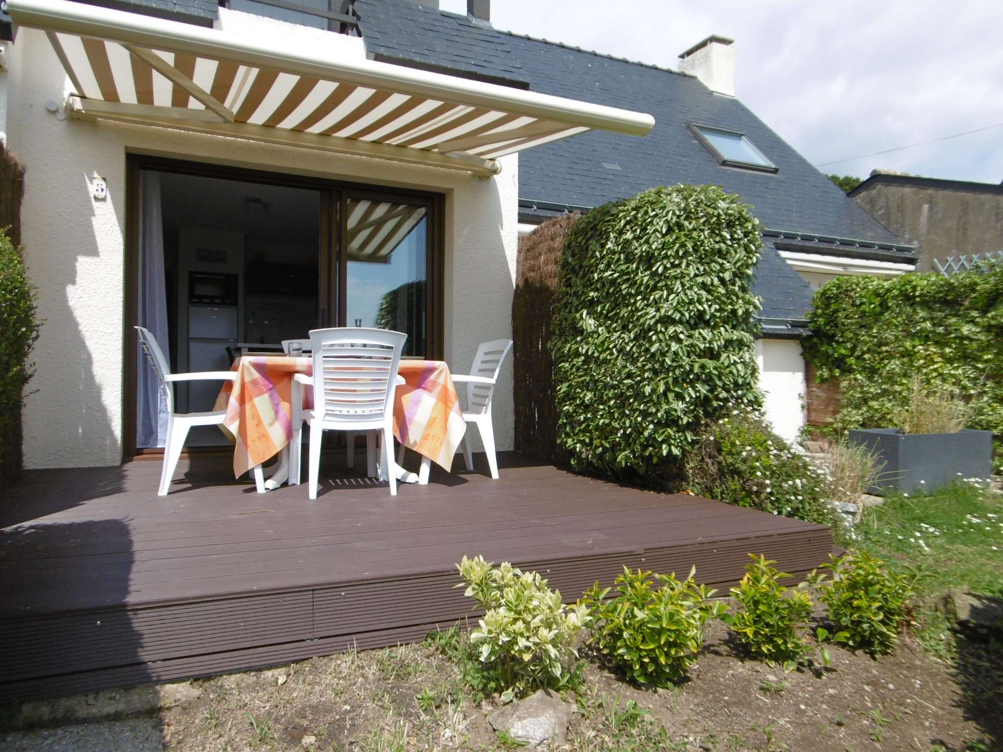 - Aperçu vue mer, terrasse équipée d'un salon de jardin et d'un store électrique