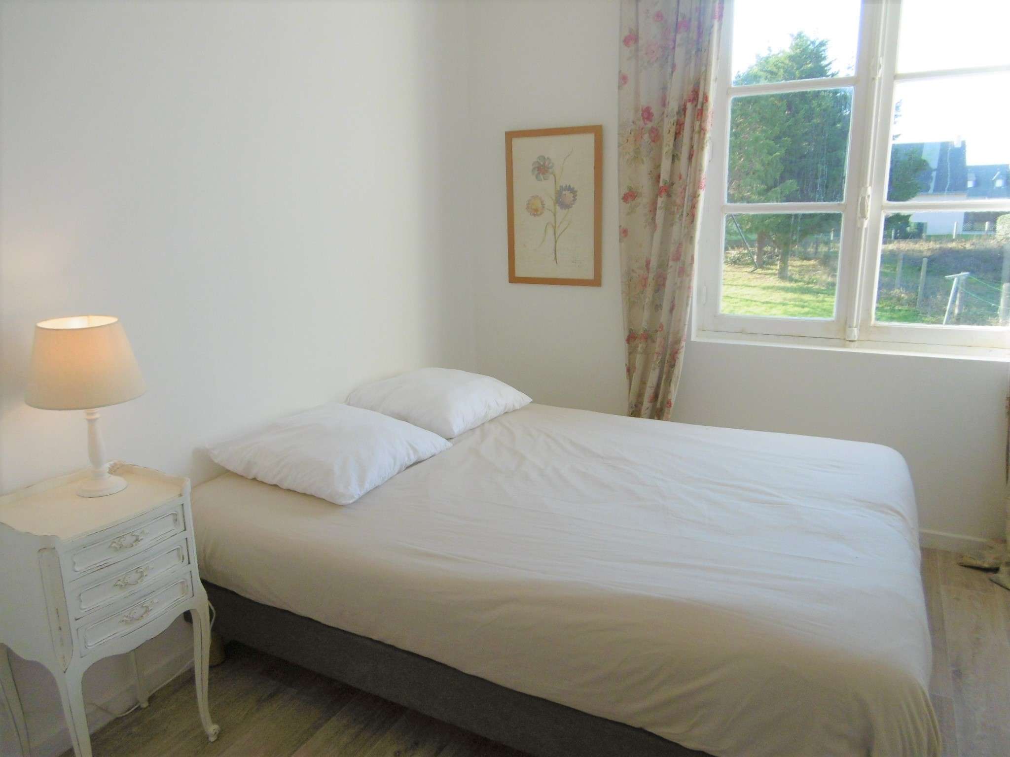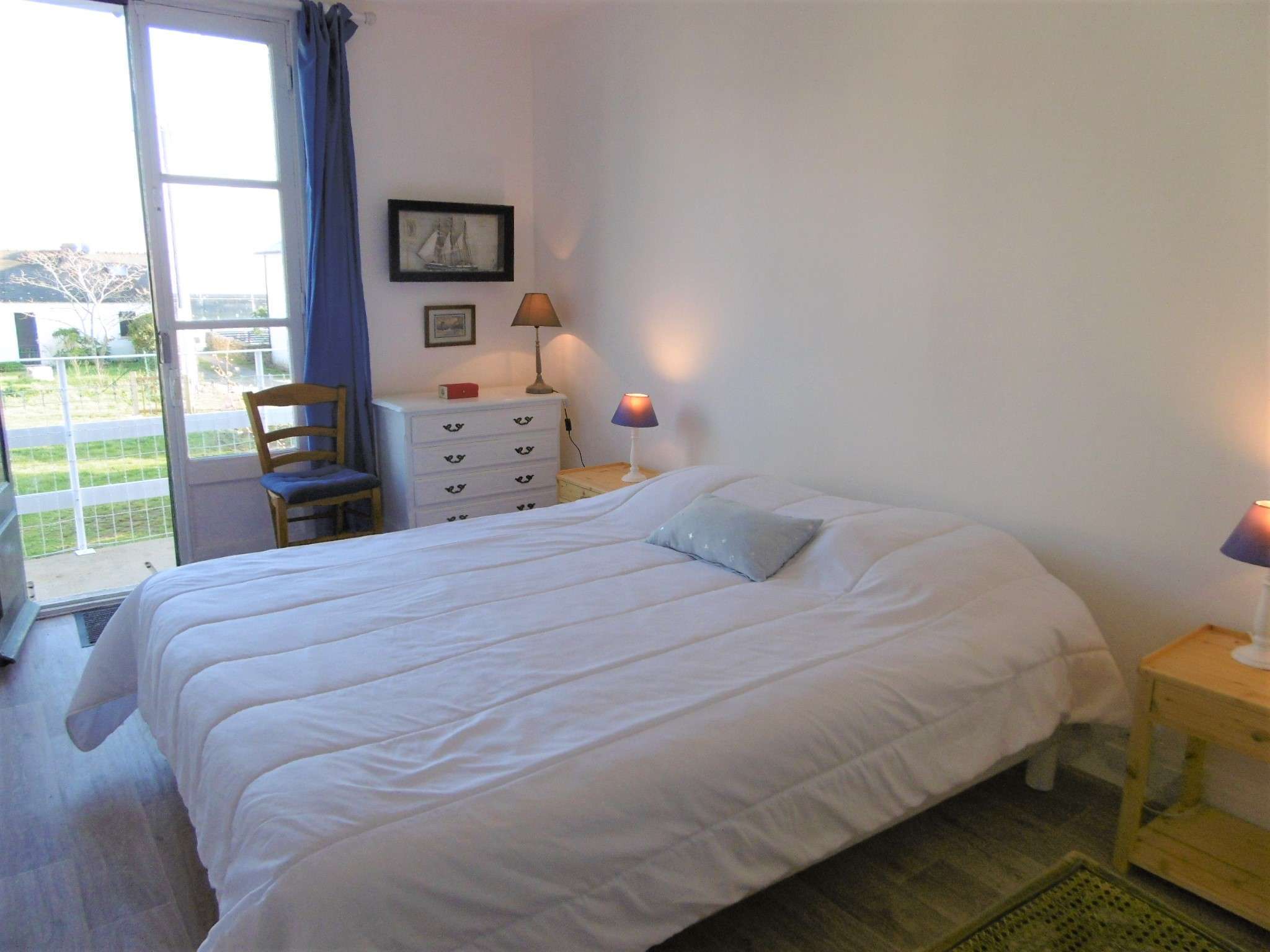 | Chambre 1 - Chambre 1 lit double 160 cm avec une porte-fenêtre - - Vue sur le jardin et l'océan - accès sur la terrasse - Une commode + 2 tables de chevet avec lampes | 11 | Est |