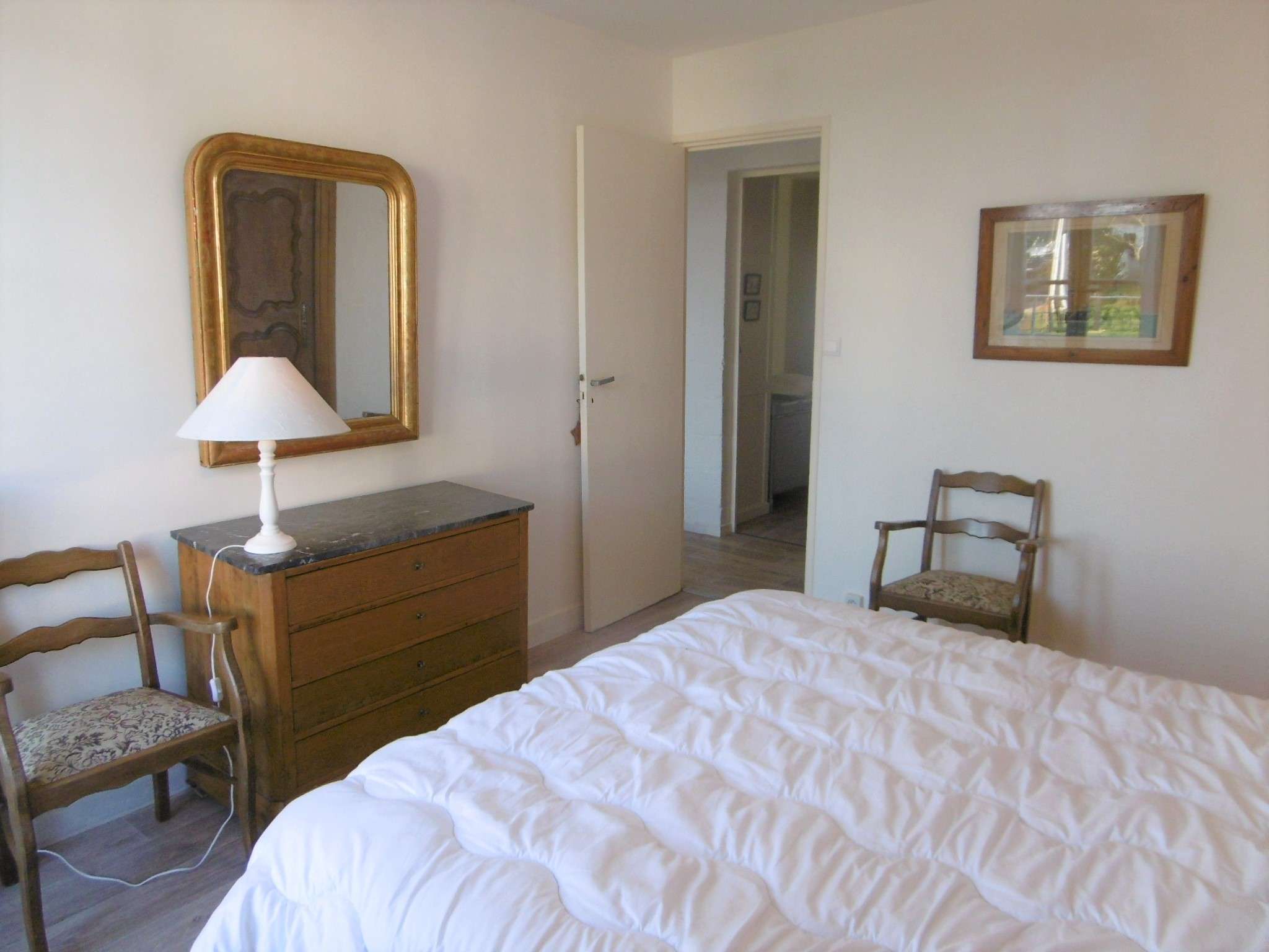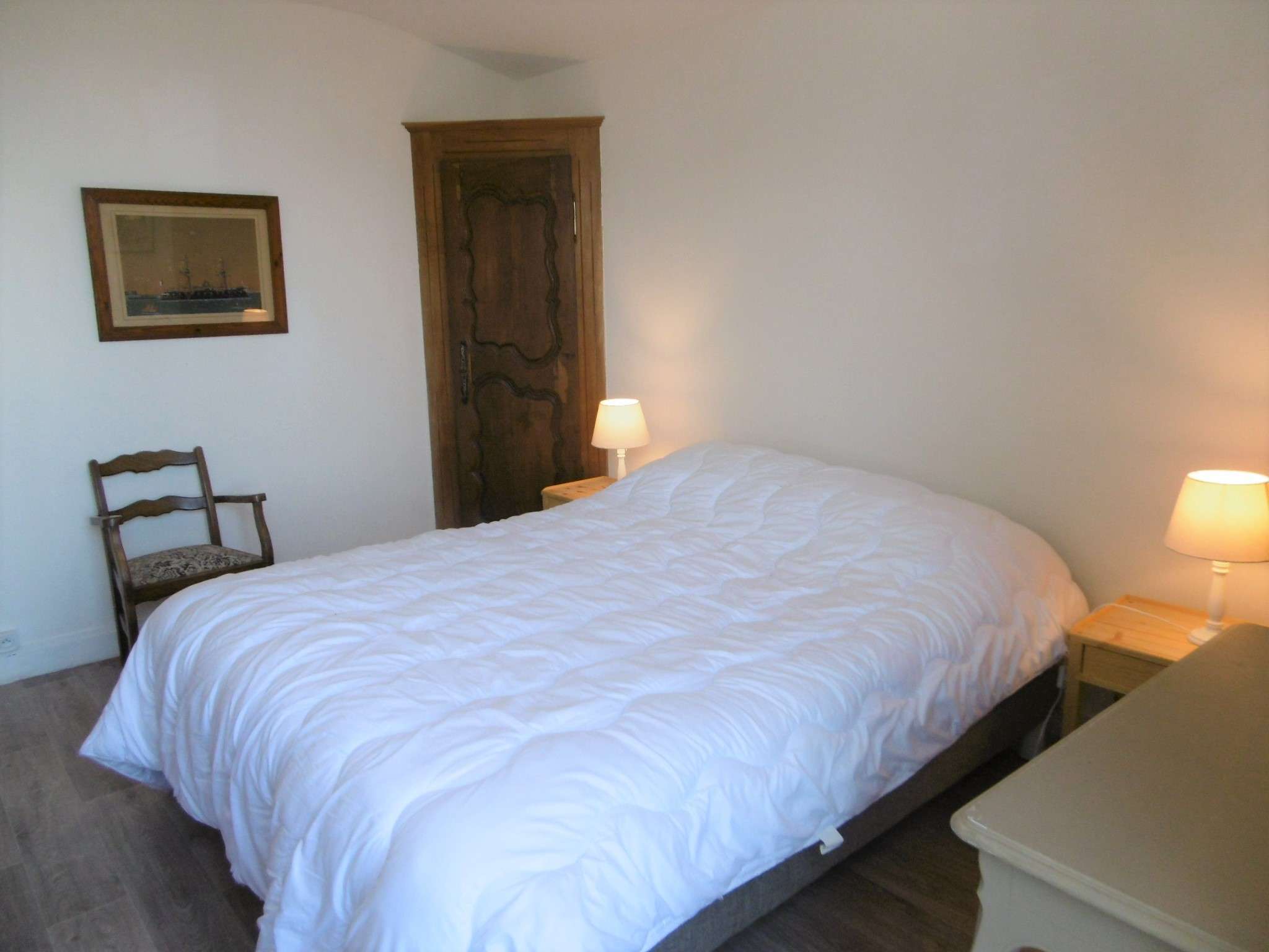 - Chambre 1 avec un accès sur la terrasse : un lit double en 160 et une commode