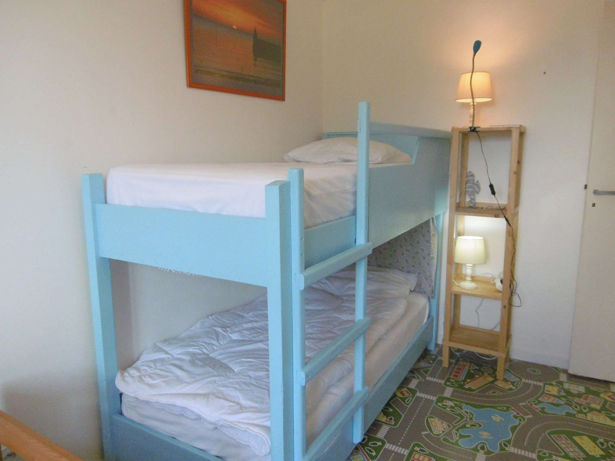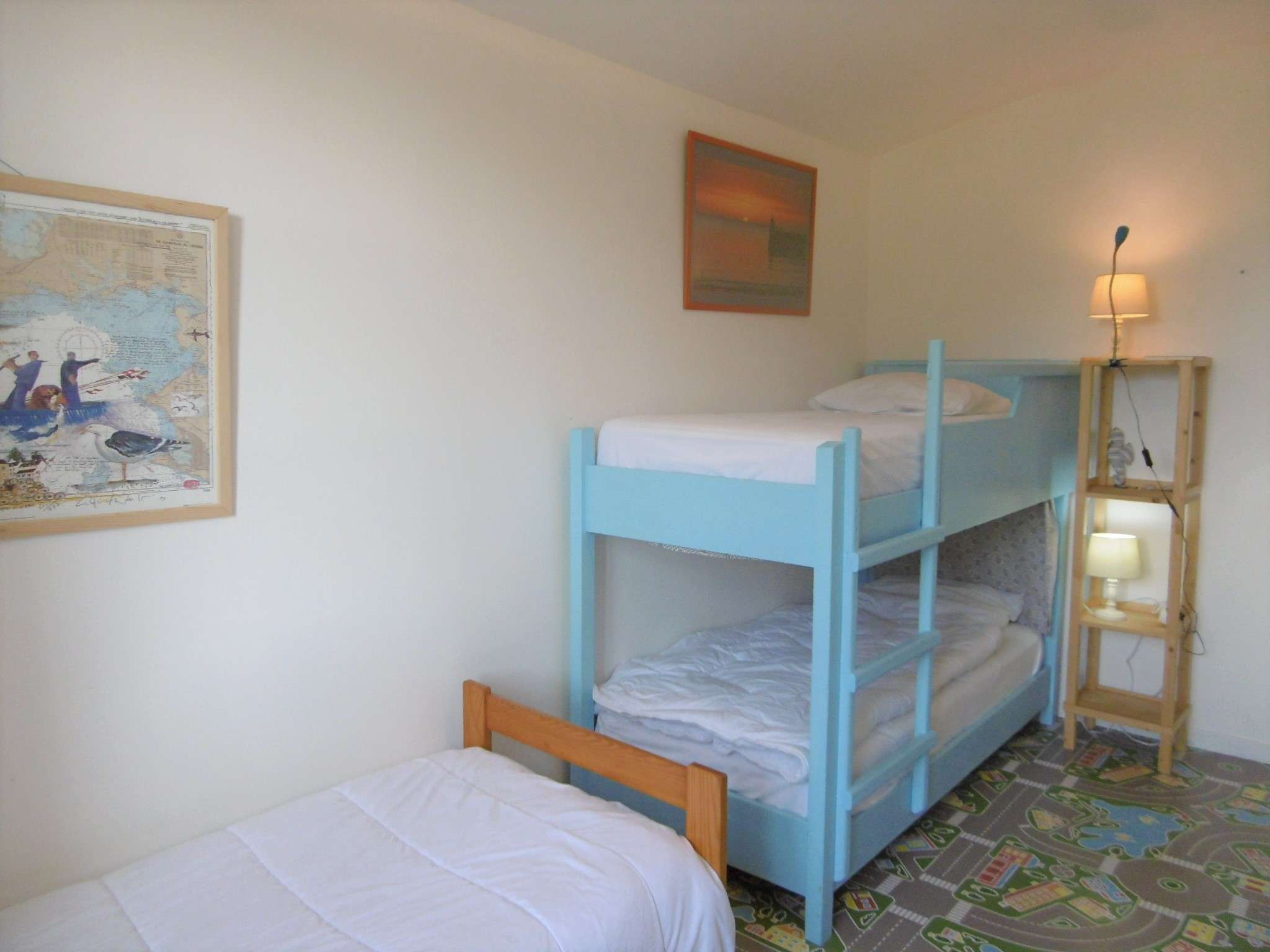 - Chambre 4 : lits superposés + un lit simple en 80, rangements.