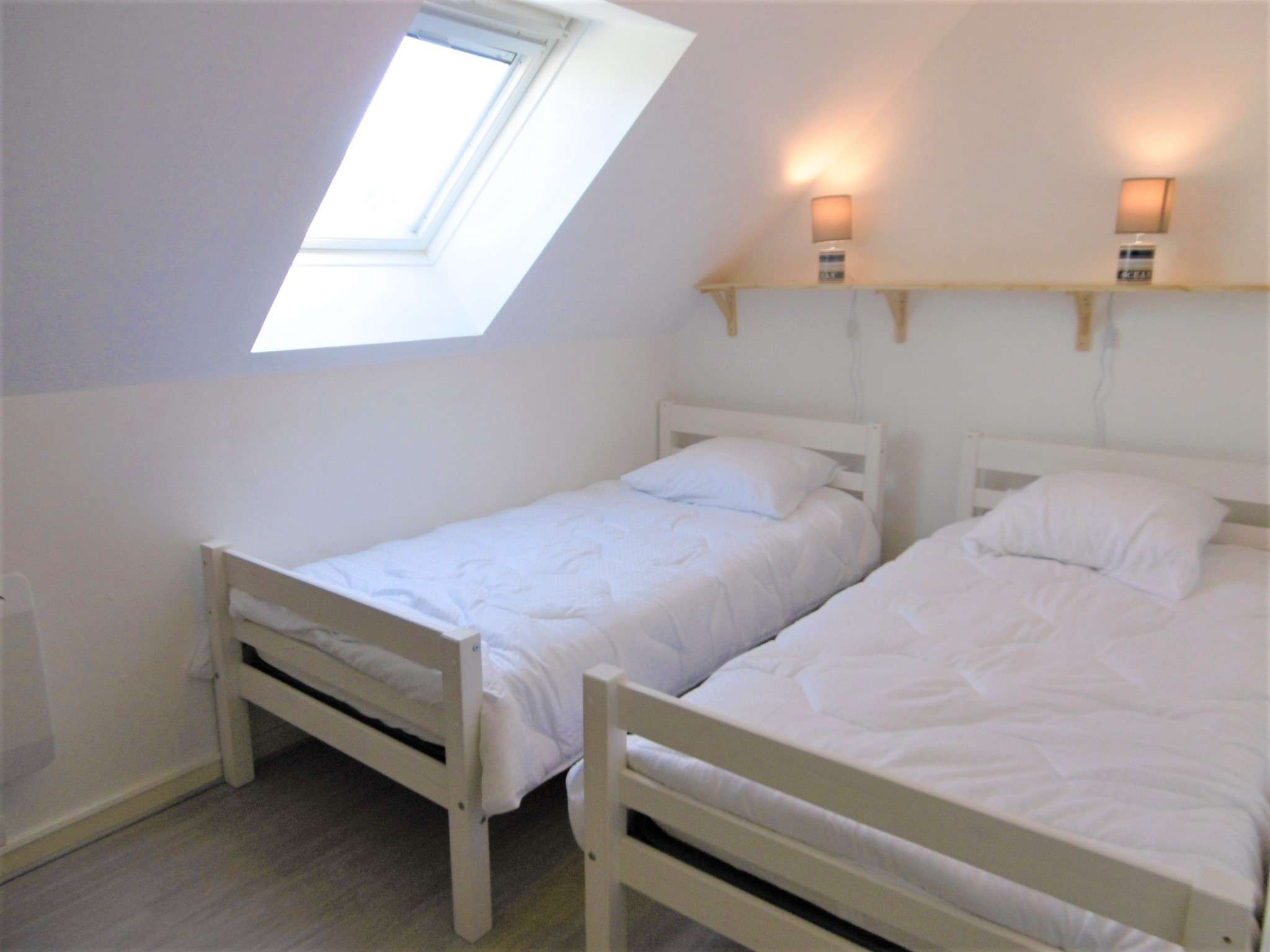 | Chambre 2 Chambre avec 1 lit simple 90 cm - 1 Vélux - 2 lampes - 1 penderie - 1 étagère | 5 | Nord |