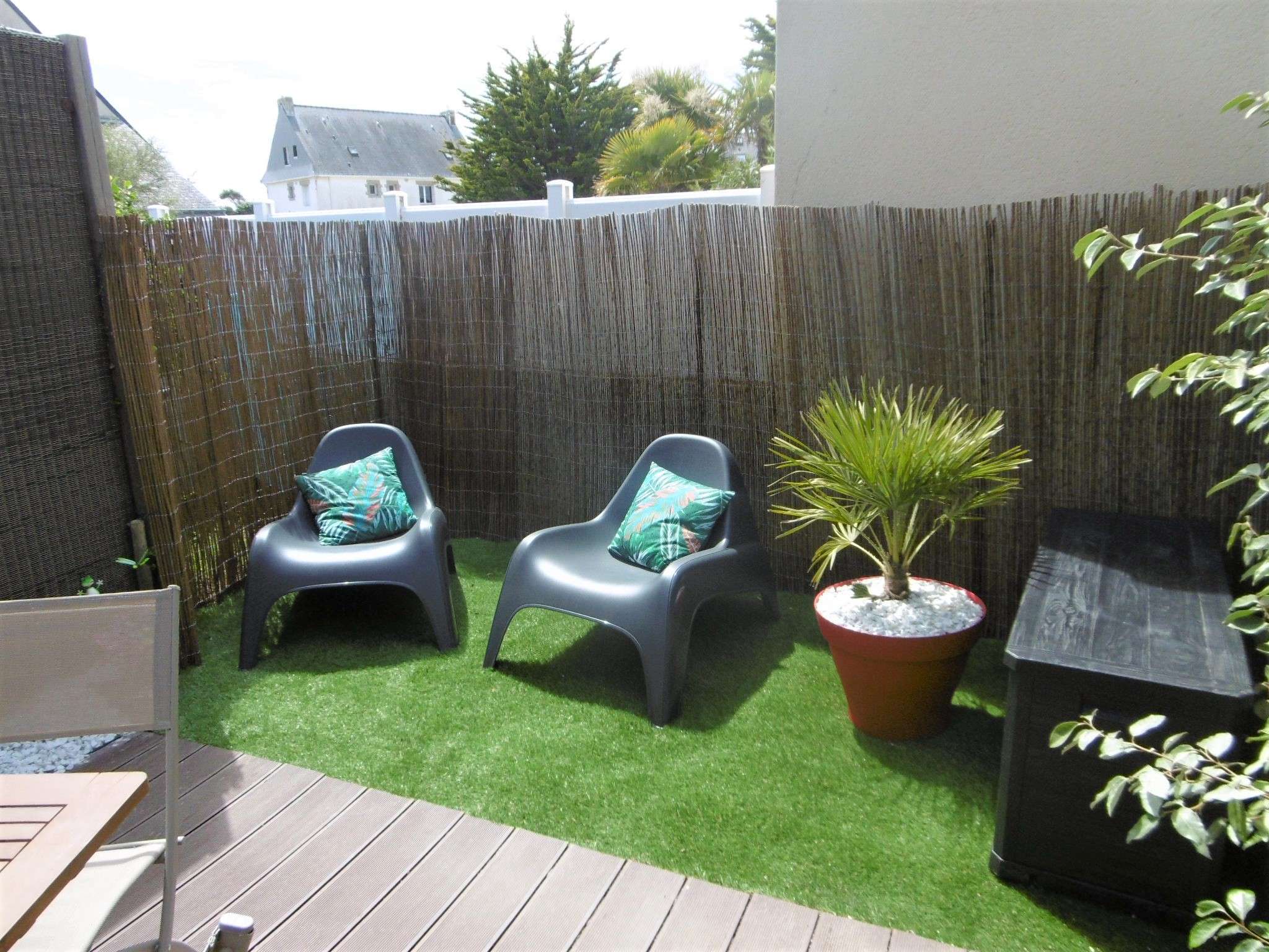- Un jardin clos avec une terrasse équipée d'un salon de jardin , barbecue, store électrique.