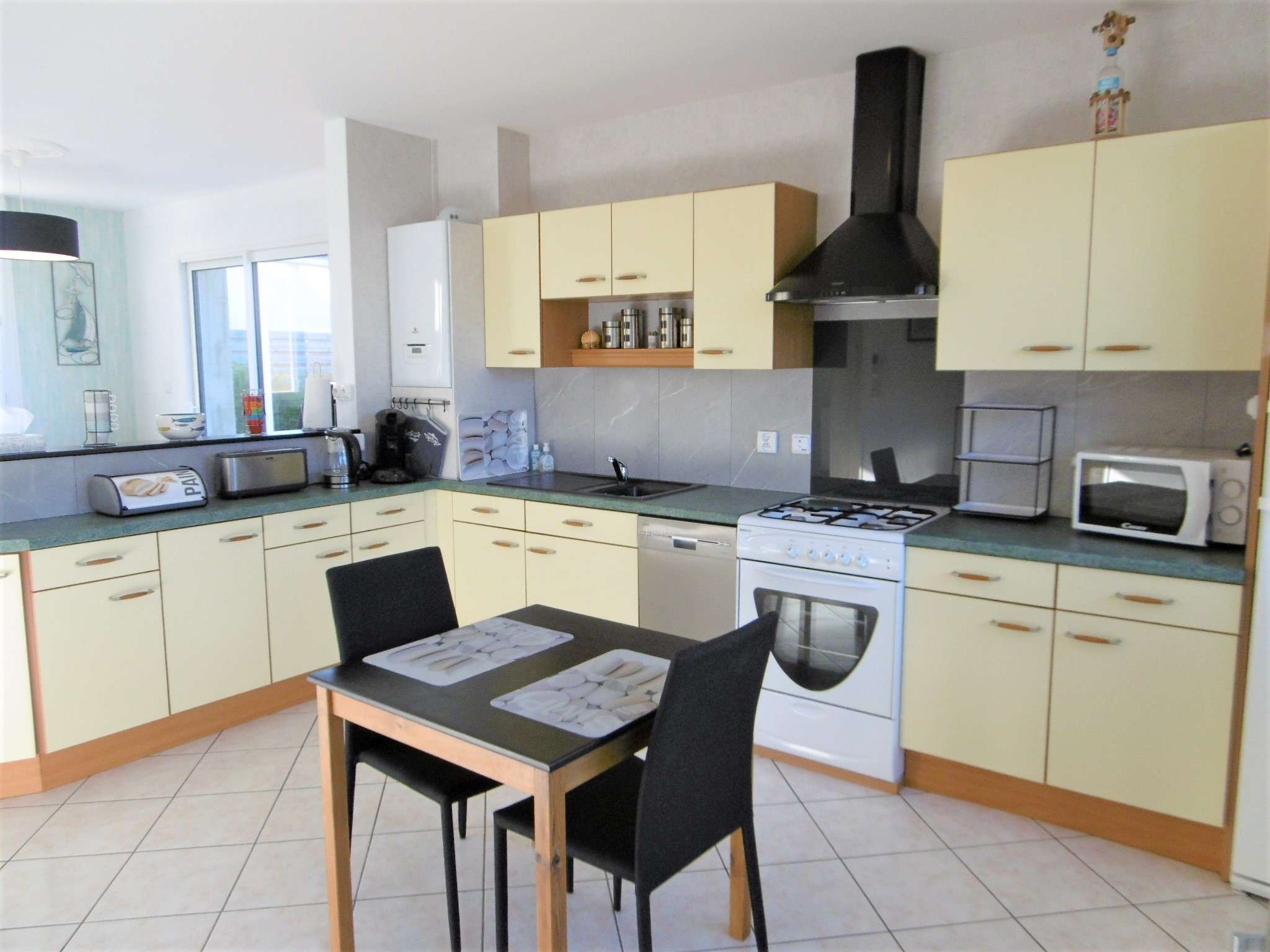 - Une cuisine toute équipée avec lave-vaisselle ouverte sur le séjour