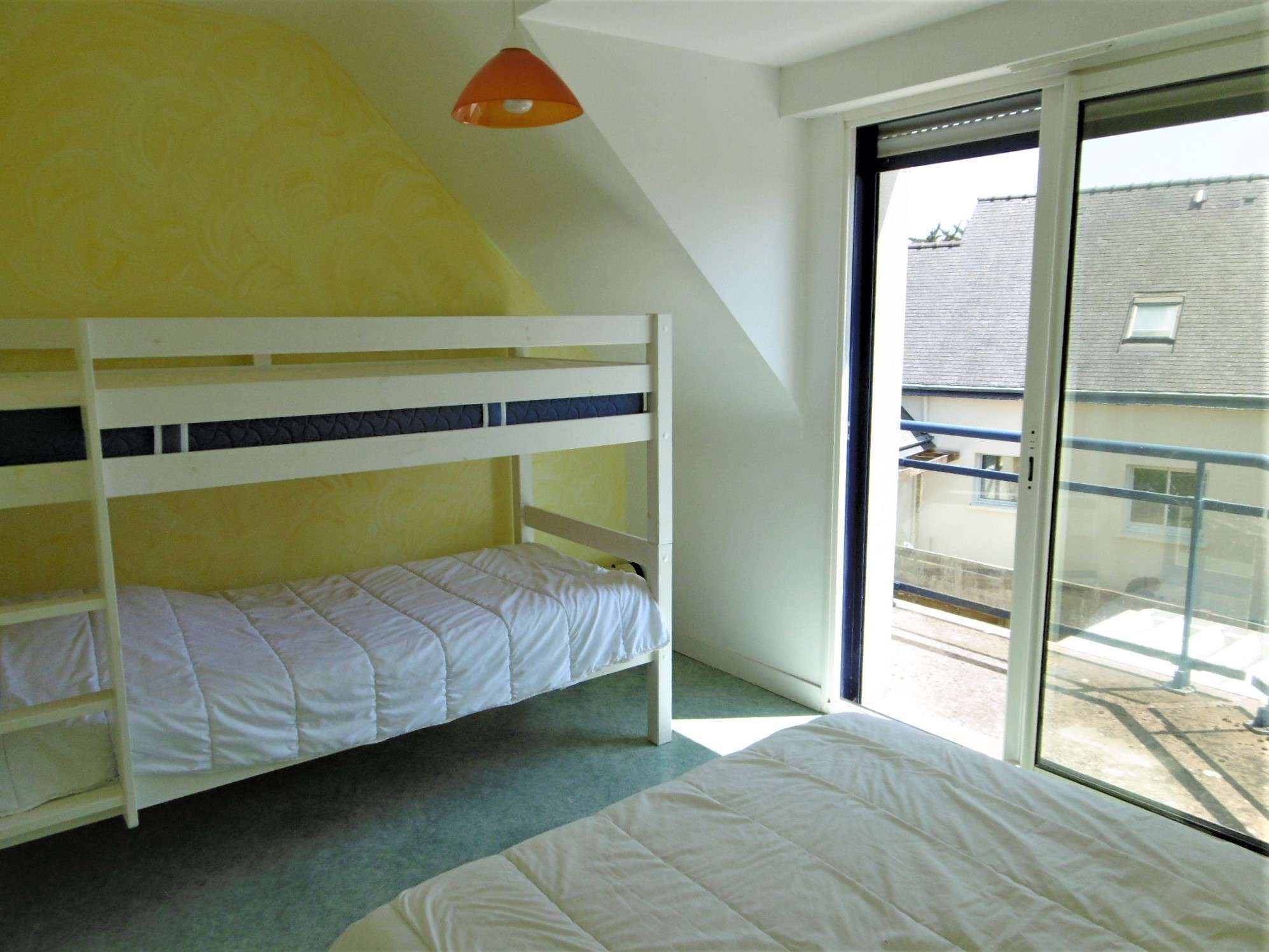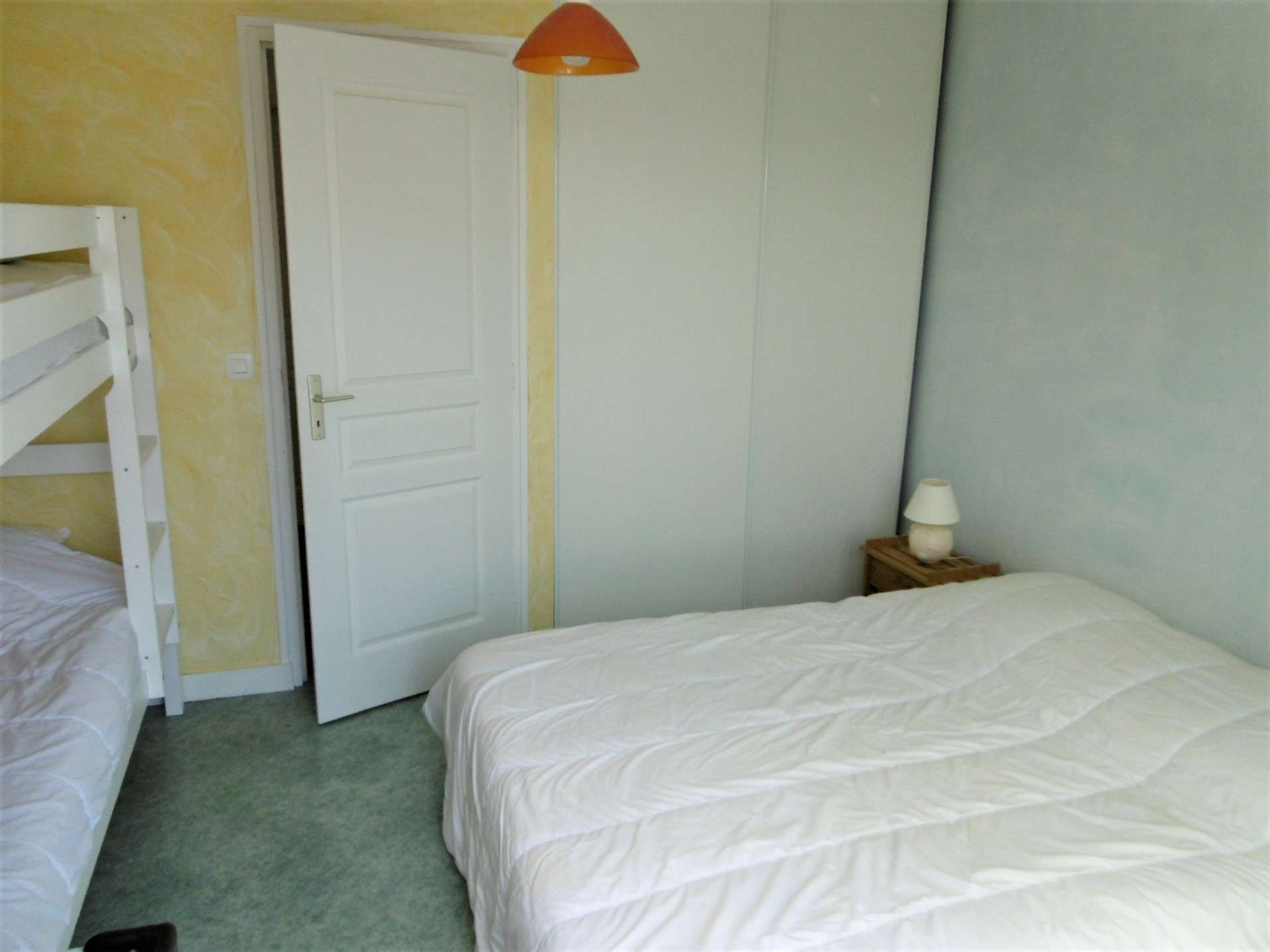 - Chambre 3 : un lit double en 140 + lits superposés, rangement, et une terrasse avec vue sur la mer