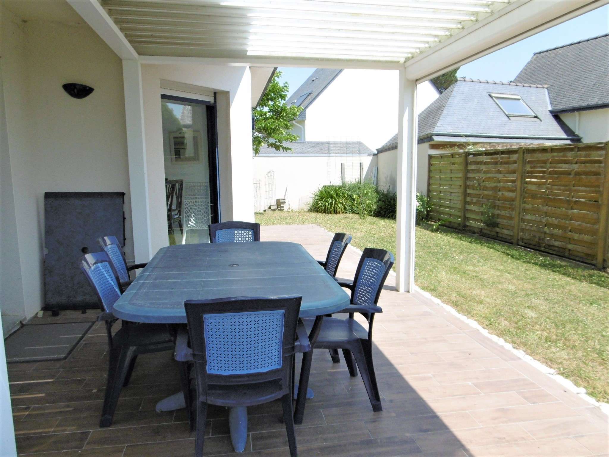 - Jardin non clos avec terrasse équipée d'un salon de jardin, et d'un barbecue.