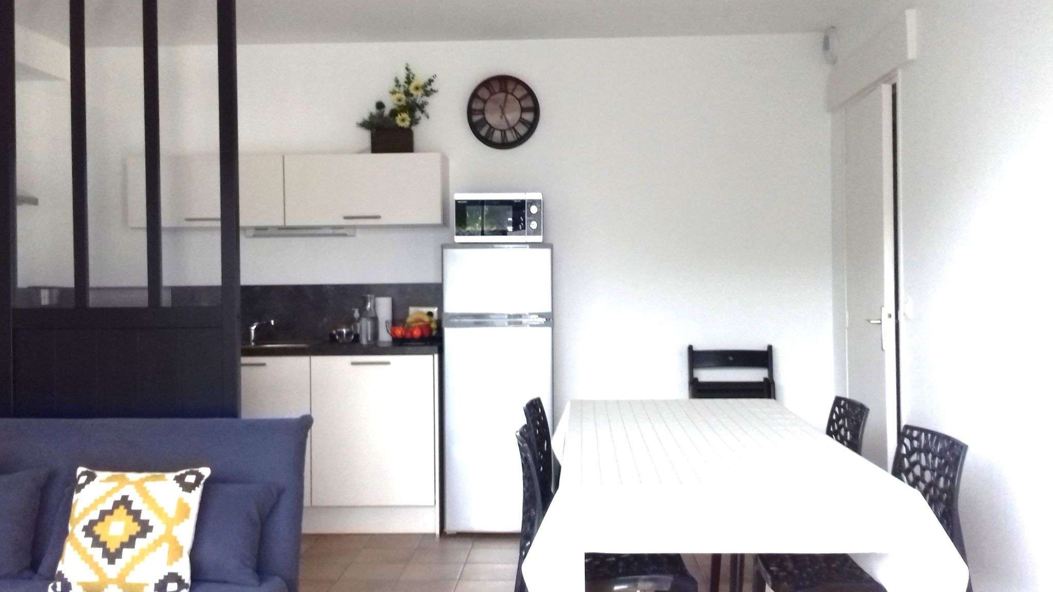- Une cuisine toute équipée ouverte sur le séjour donnant sur la terrasse.