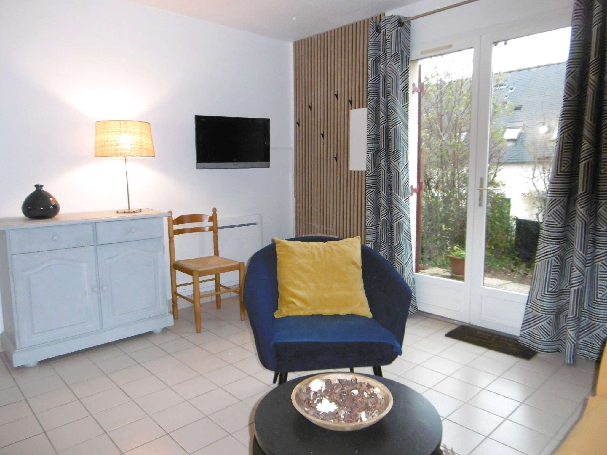 - Un séjour avec un canapé donnant sur le jardin