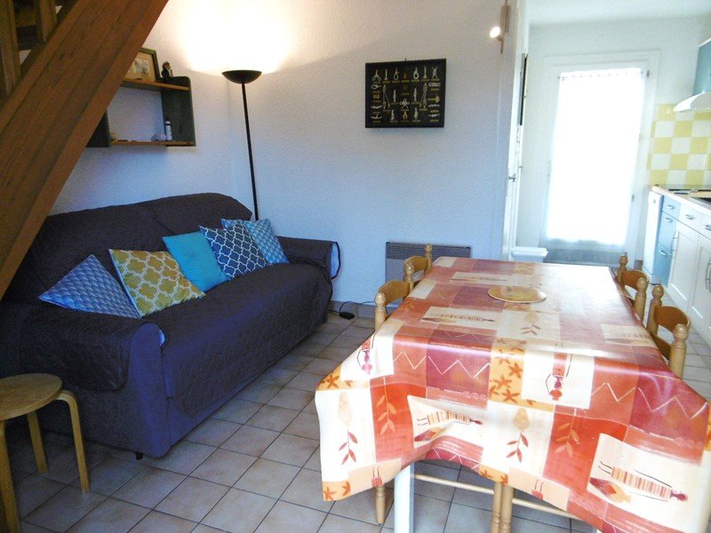 - Un séjour avec un canapé-lit type Rapido, donnant sur le jardin