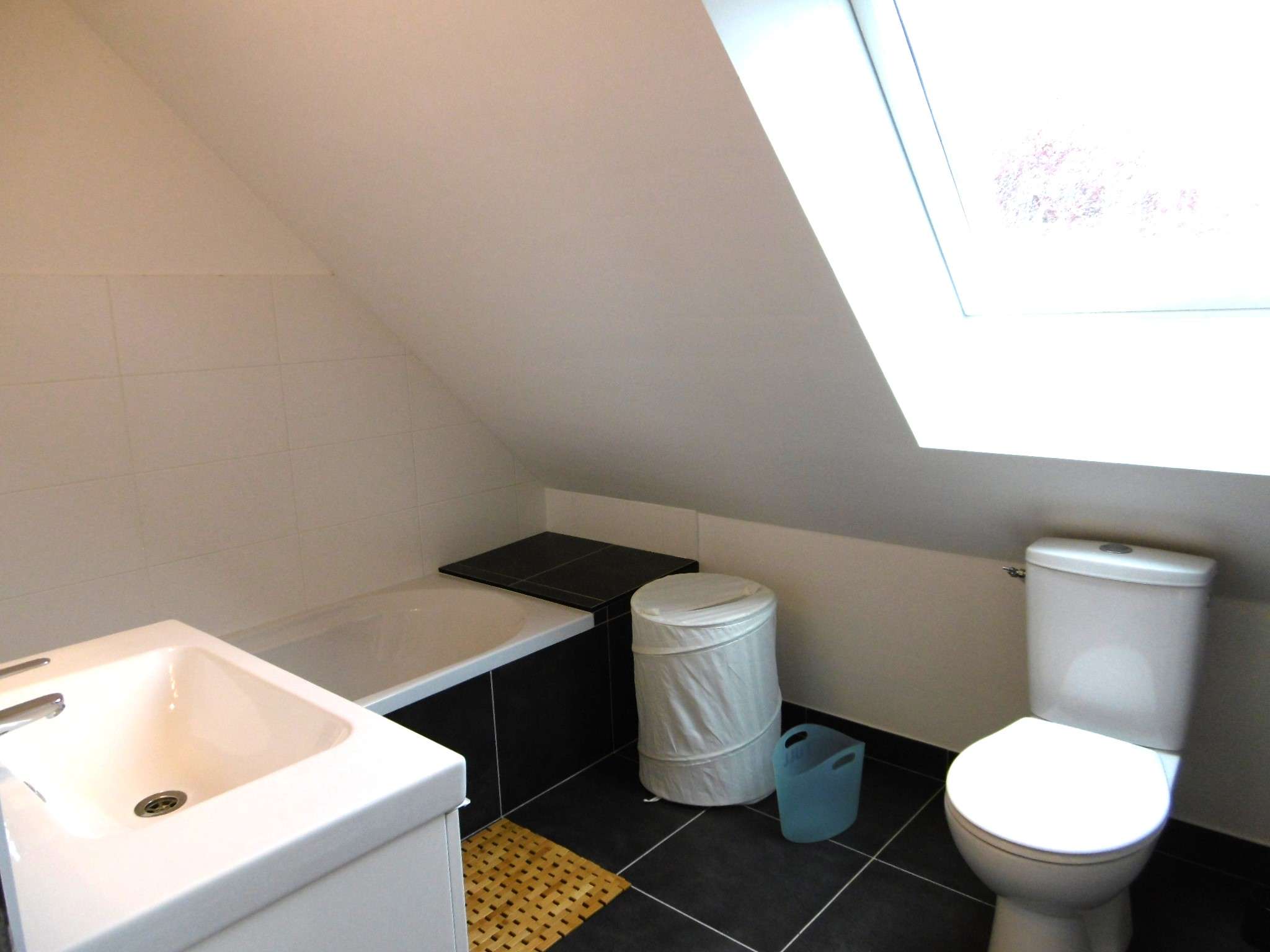 - Une salle de bain avec 1 douche et 1 baignoire, wc.