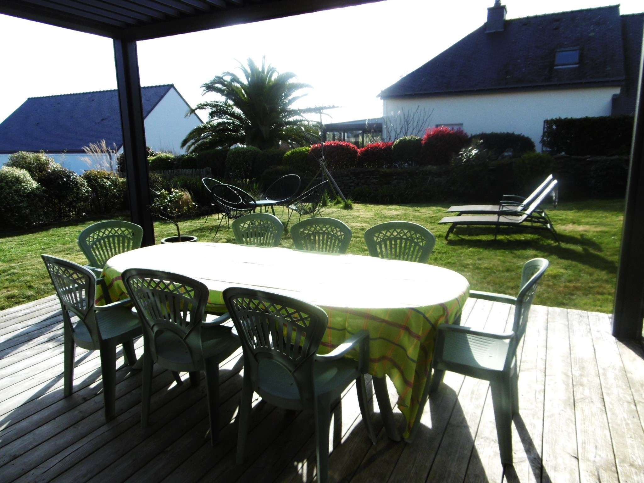 - Un jardin non clos équipé d'un salon de jardin avec barbecue