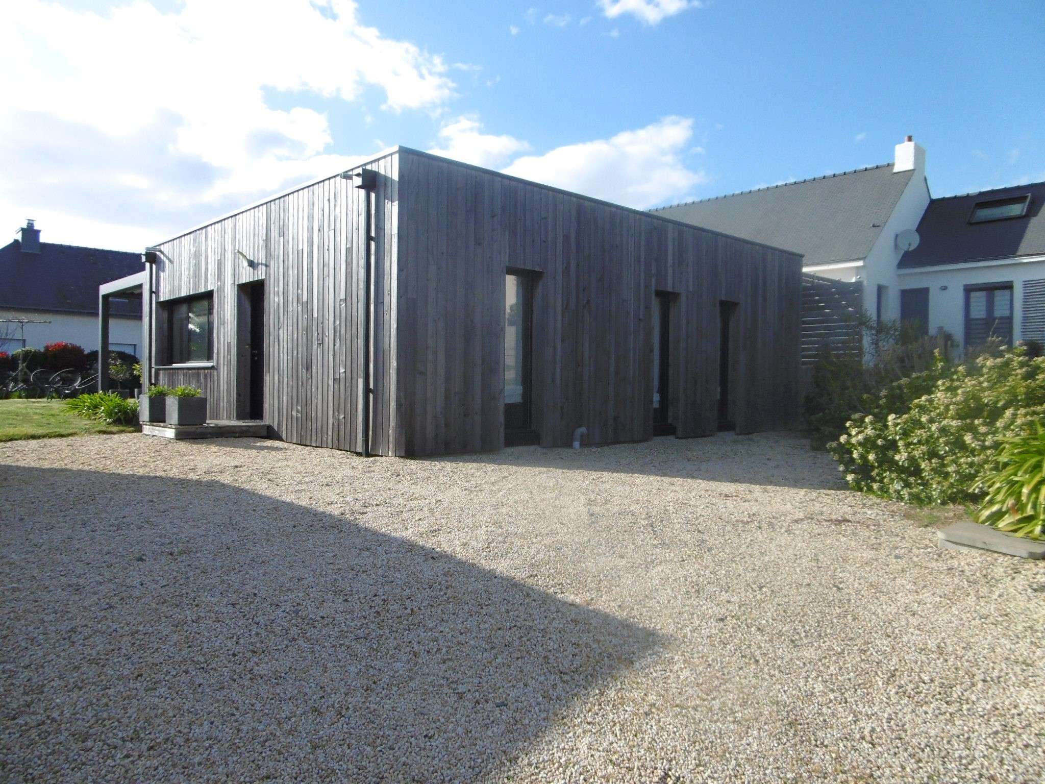 Cettte maison individuelle en bois de plain pied, de 80 m² se compose comme suit :