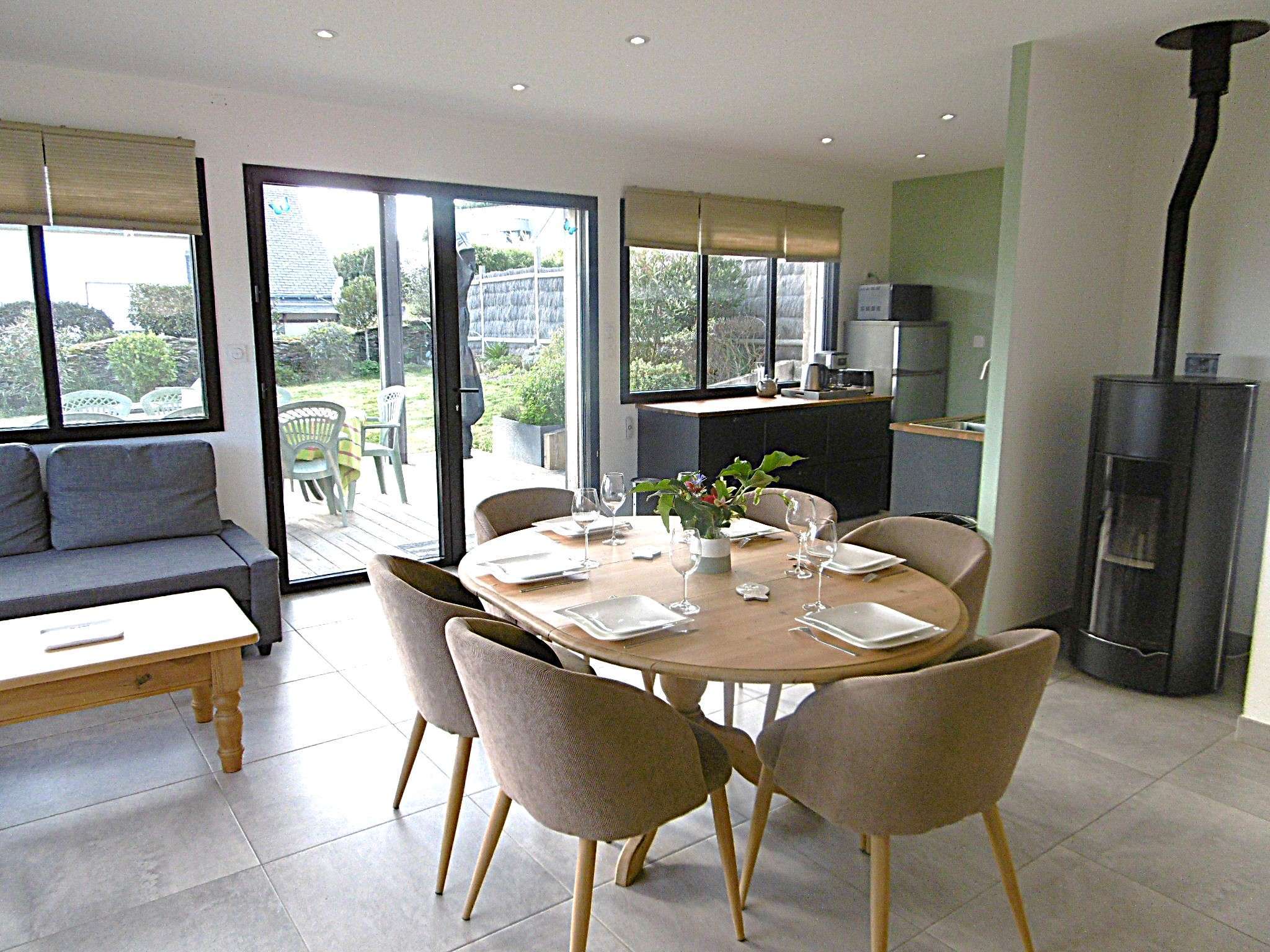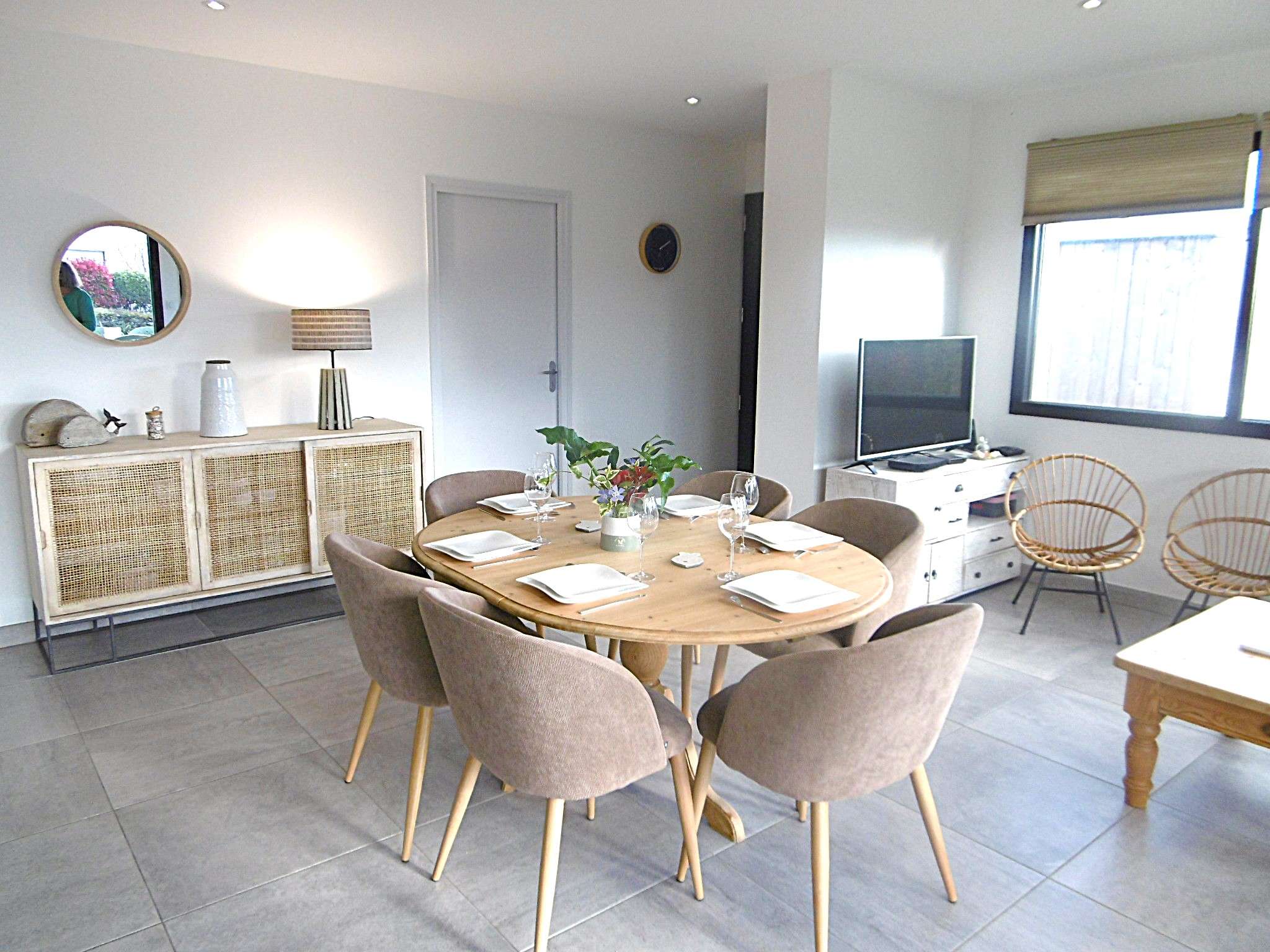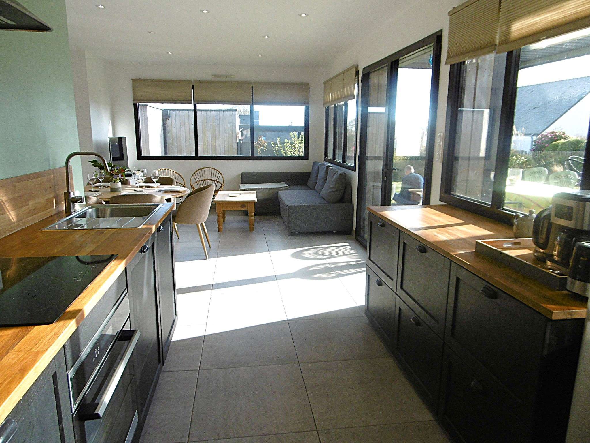 Équipement : réfrigérateur avec partie congélateur, four, micro-ondes, table de cuisson induction, lave-vaisselle, lave-linge, cafetière, grille-pain, TV,WIFI.