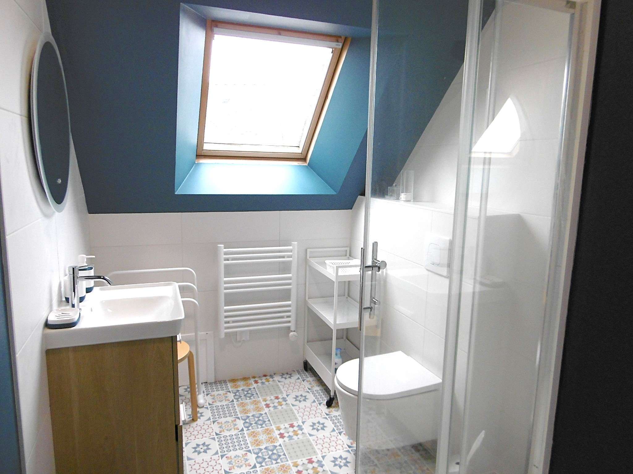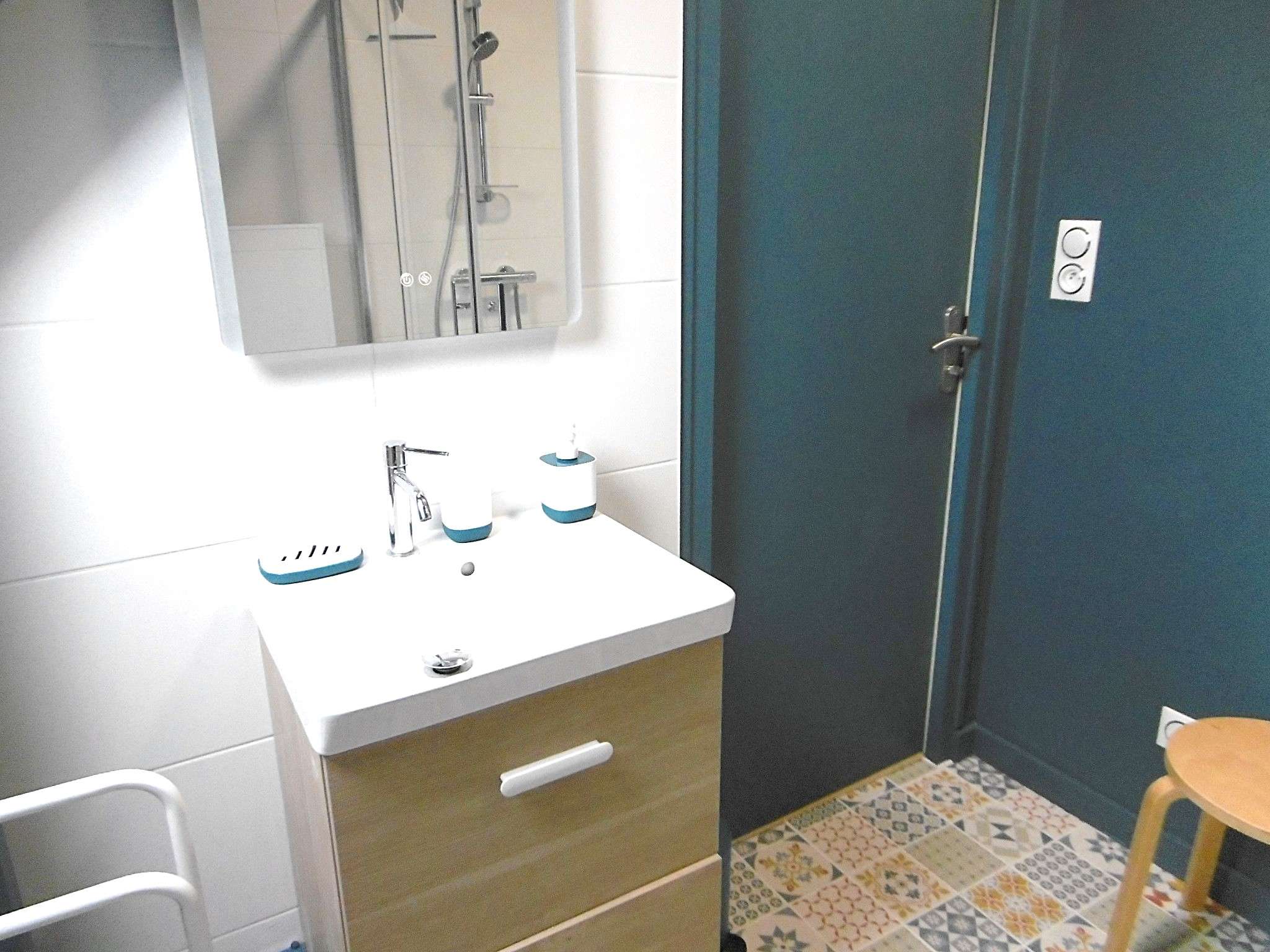 - Une salle de bain avec douche et wc.