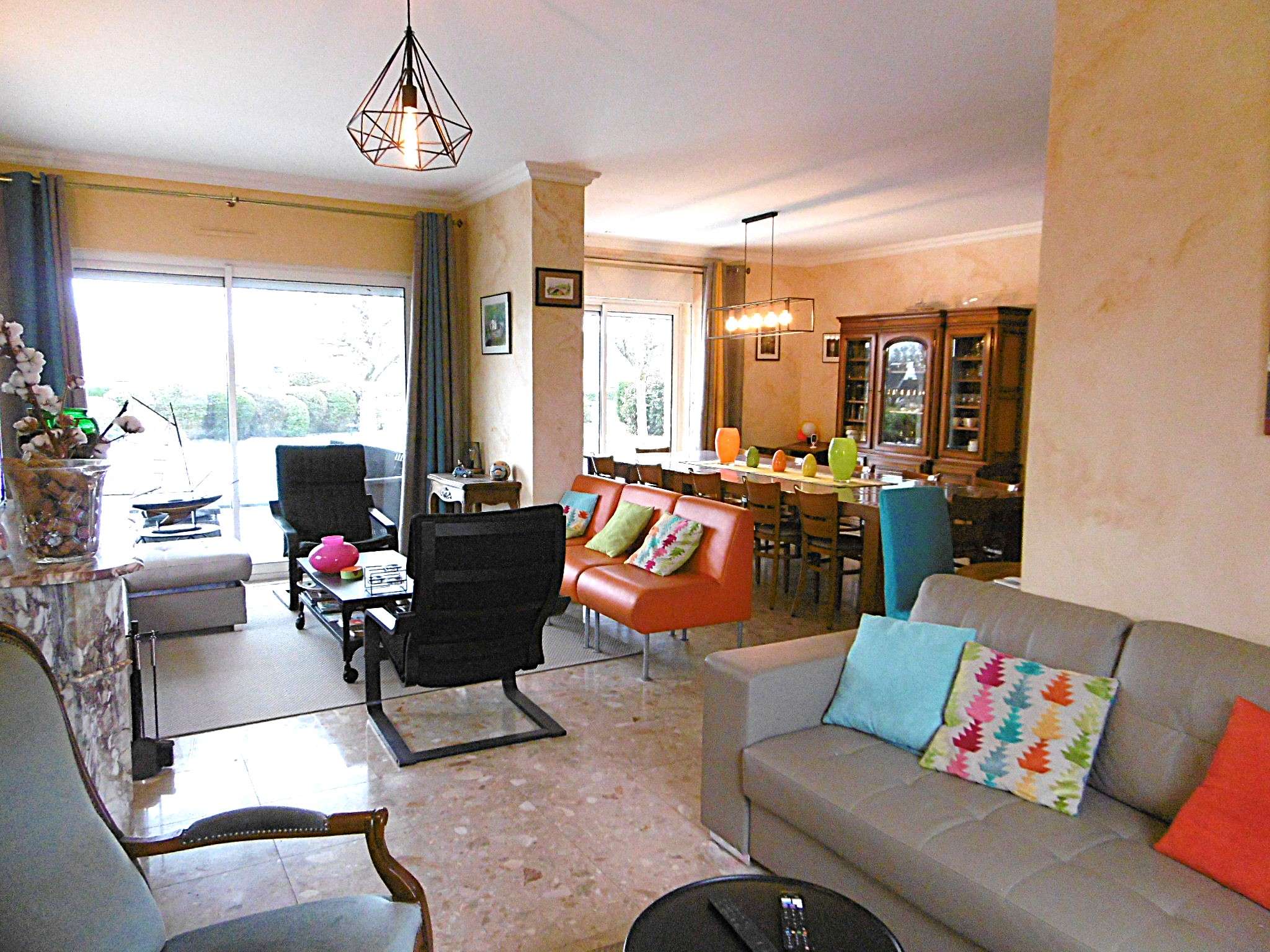 - Un spacieux séjour- salle à manger offrant une vue sur le jardin avec un accès sur la terrasse et la piscine