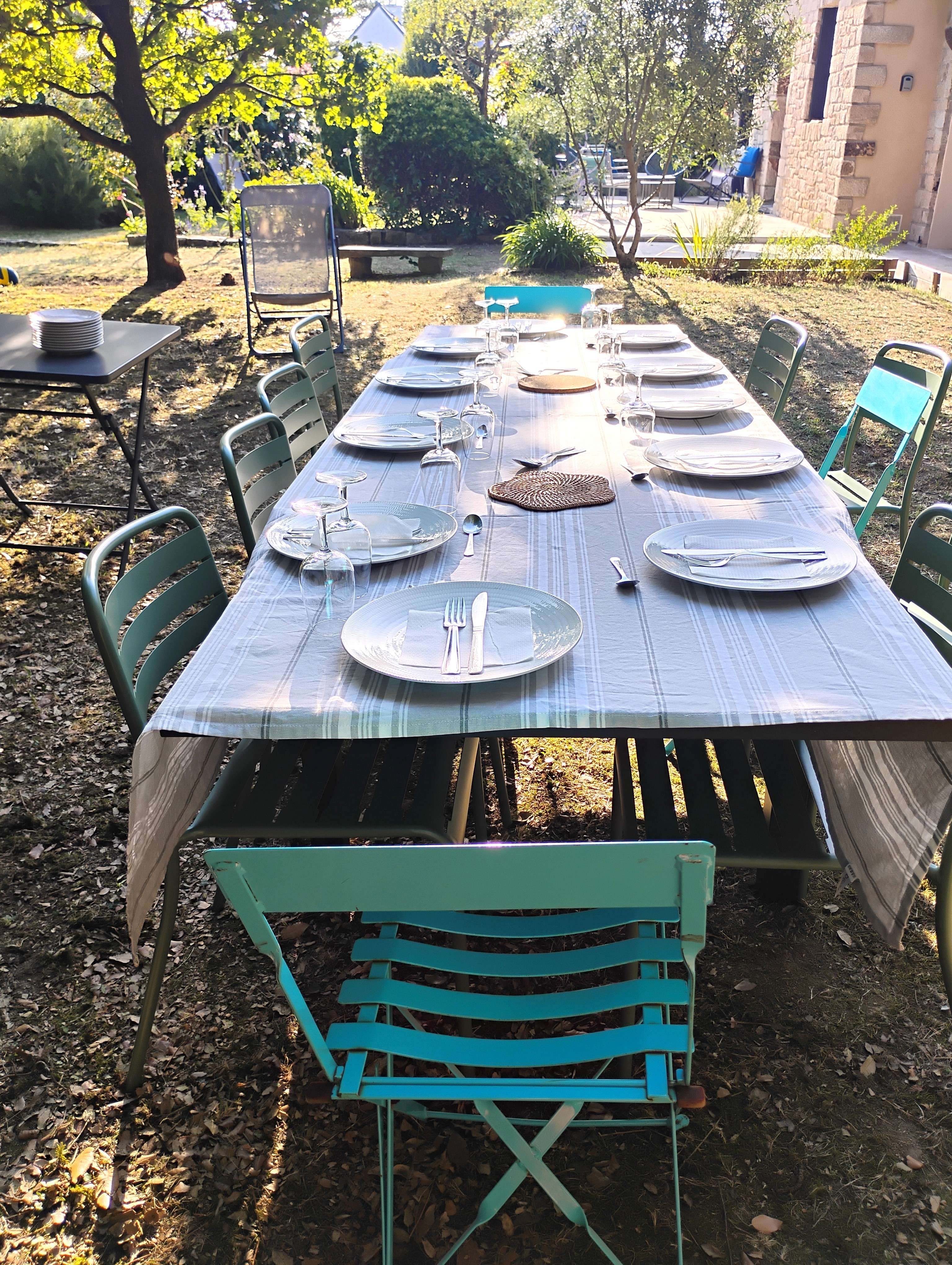 - Jardin non clos avec terrasse équipée d'un salon de jardin, de transats et barbecue.