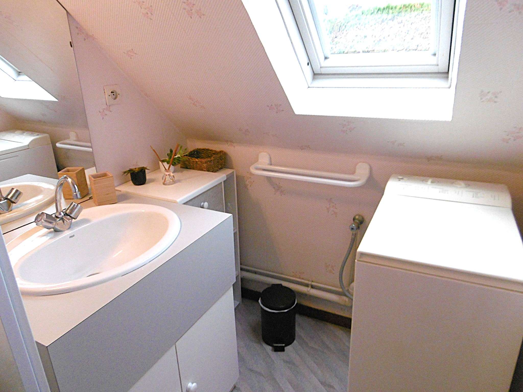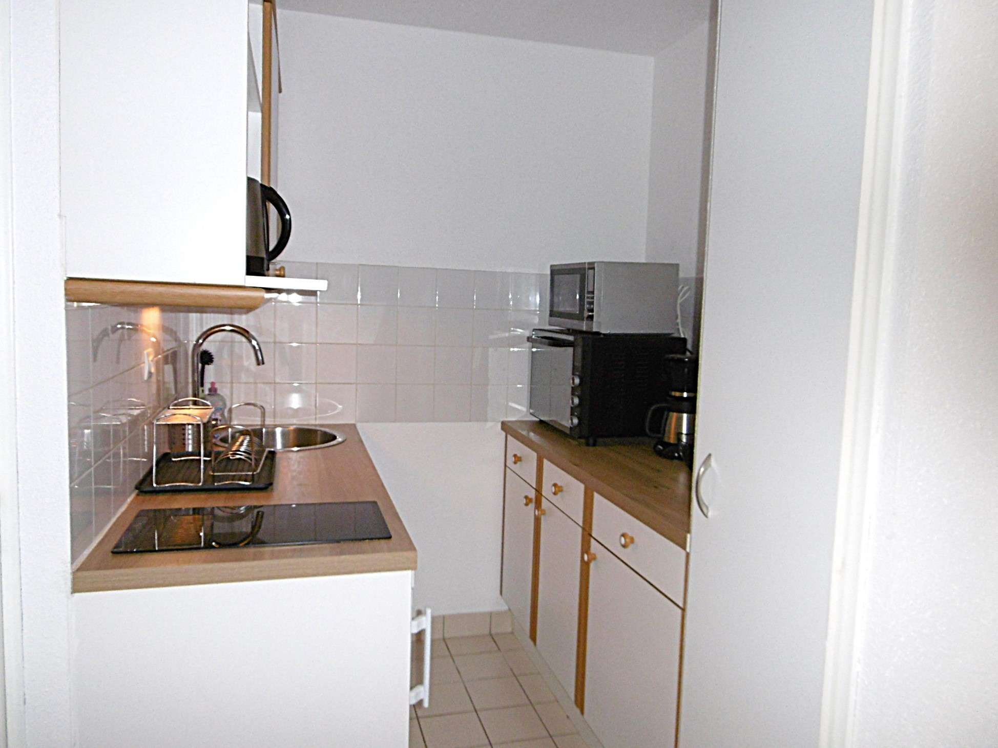 Equipement : réfrigérateur, four électrique, 3 plaques à induction, lave-linge, cafetière, grille-pain, TV.