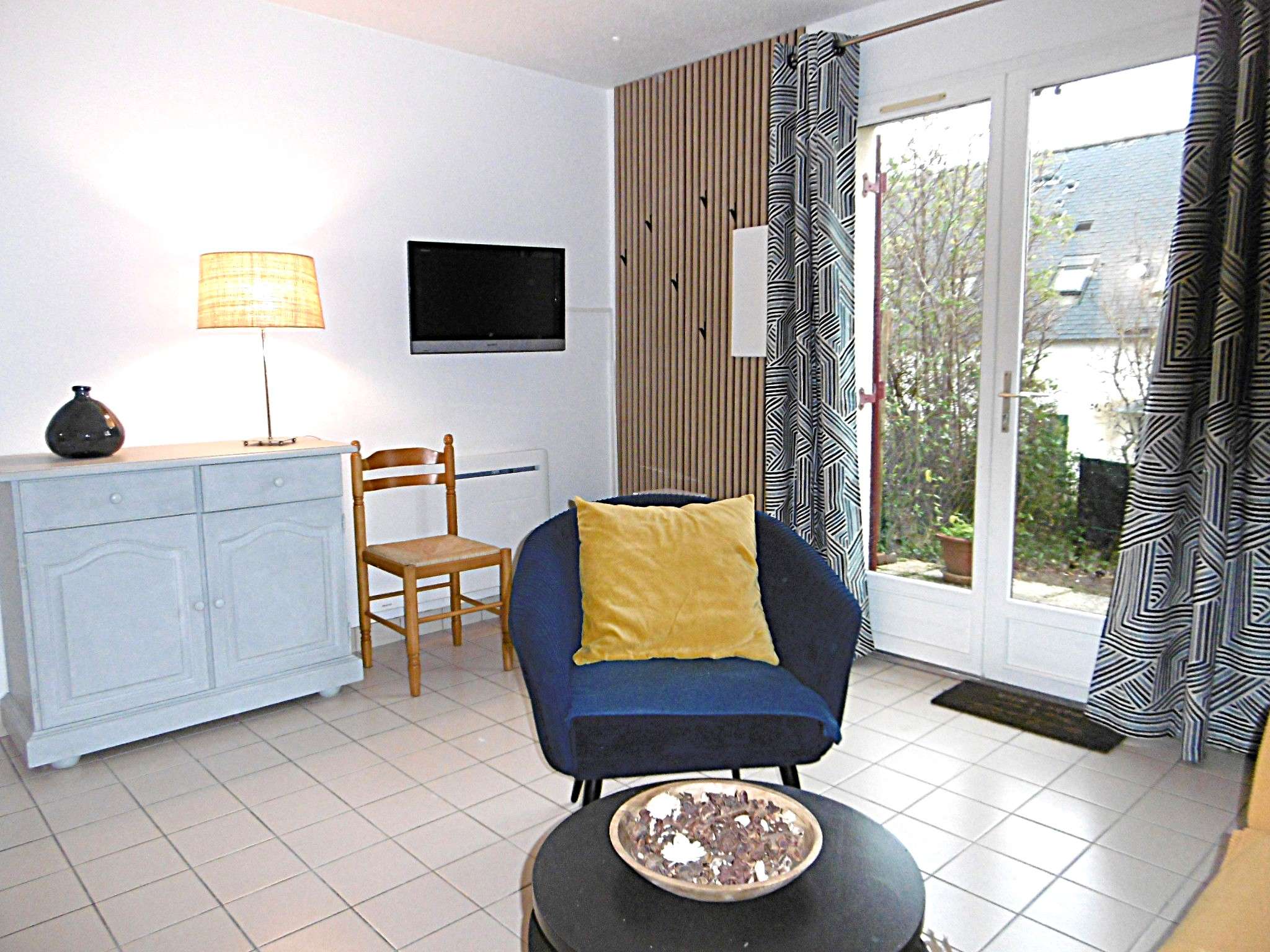 - Un séjour avec un canapé donnant sur le jardin