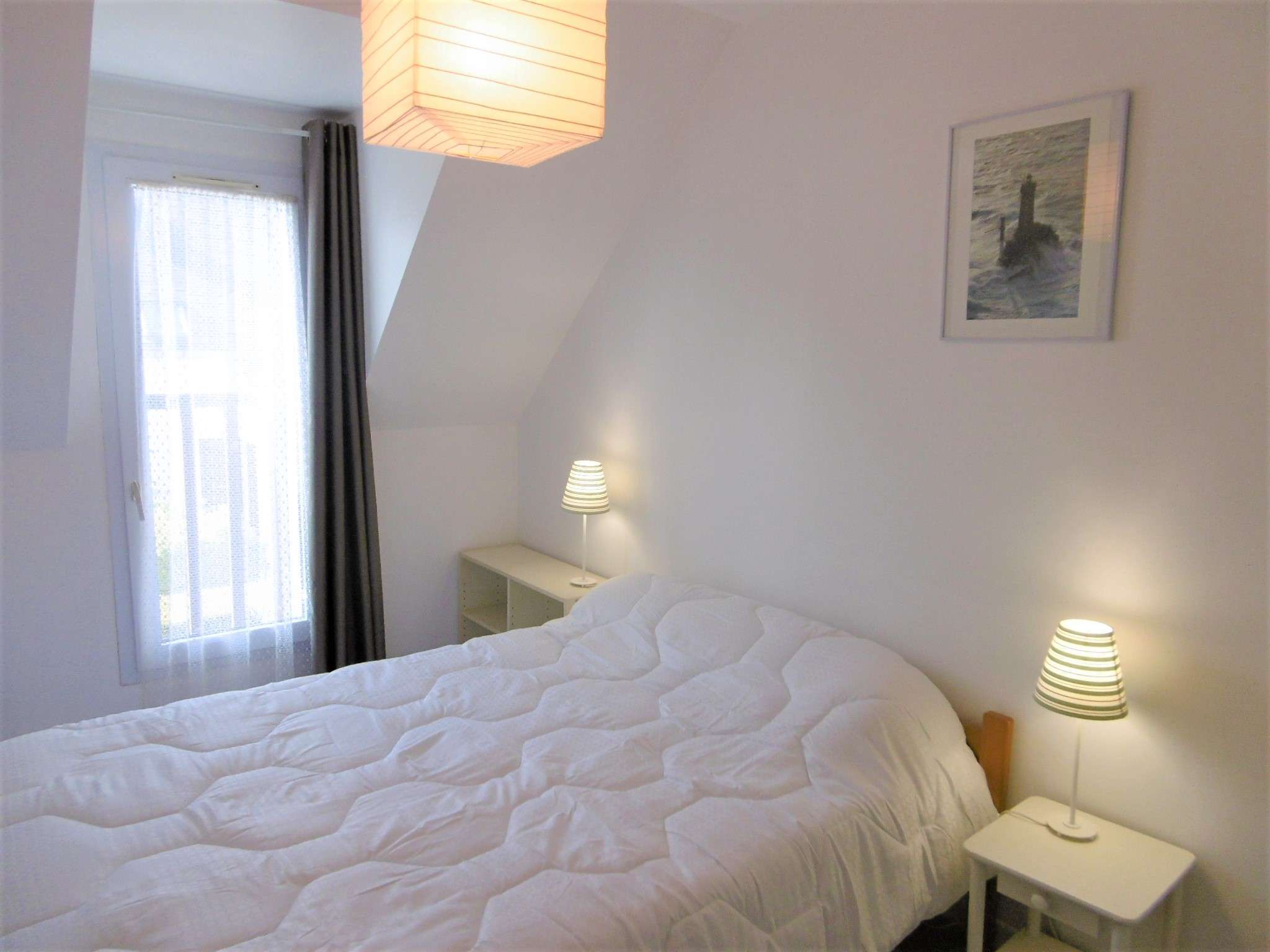 | Chambre 1 Chambre avec 1 lit double 140 cm - 1 fenêtre donnant sur le jardin - 2 chevets + 2 lampes - 1 placard - 1 penderie | 9 | Sud |