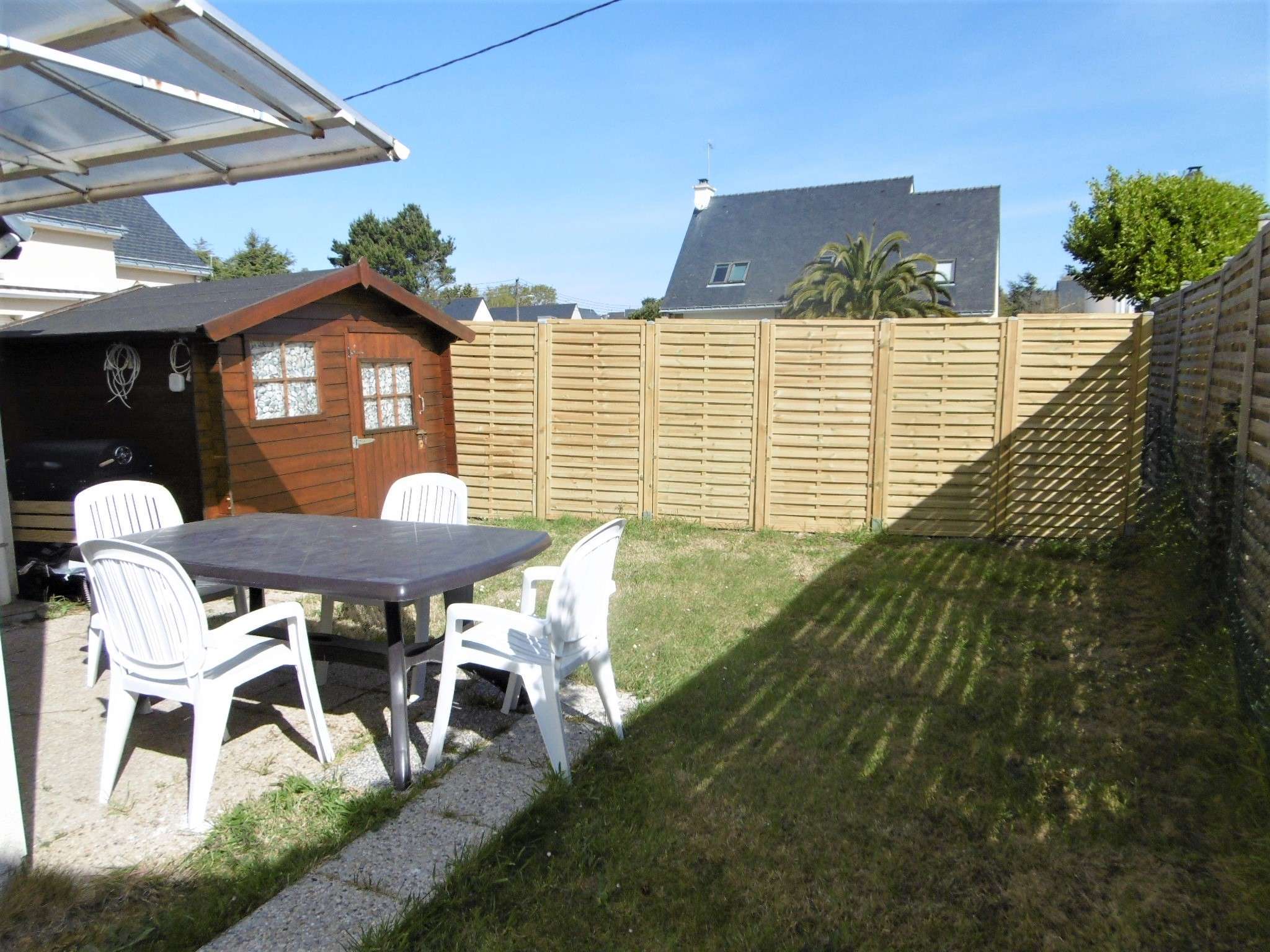 - Un jardin clos avec une terrasse équipée d'un salon de jardin et d'un barbecue