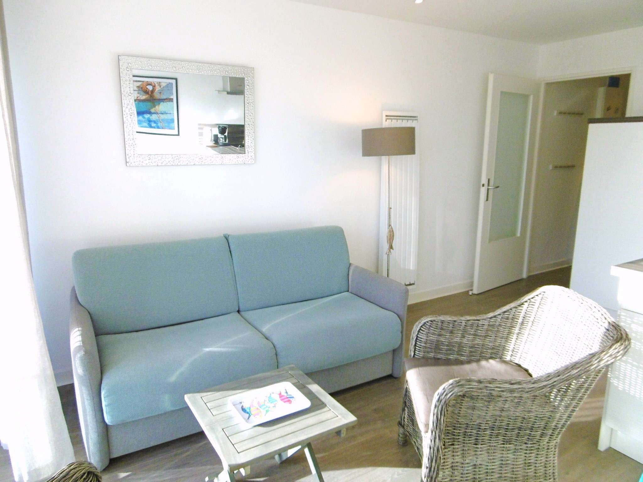 - Une cuisine toute équipée donnant sur le séjour avec un canapé-lit type rapido de bon confort