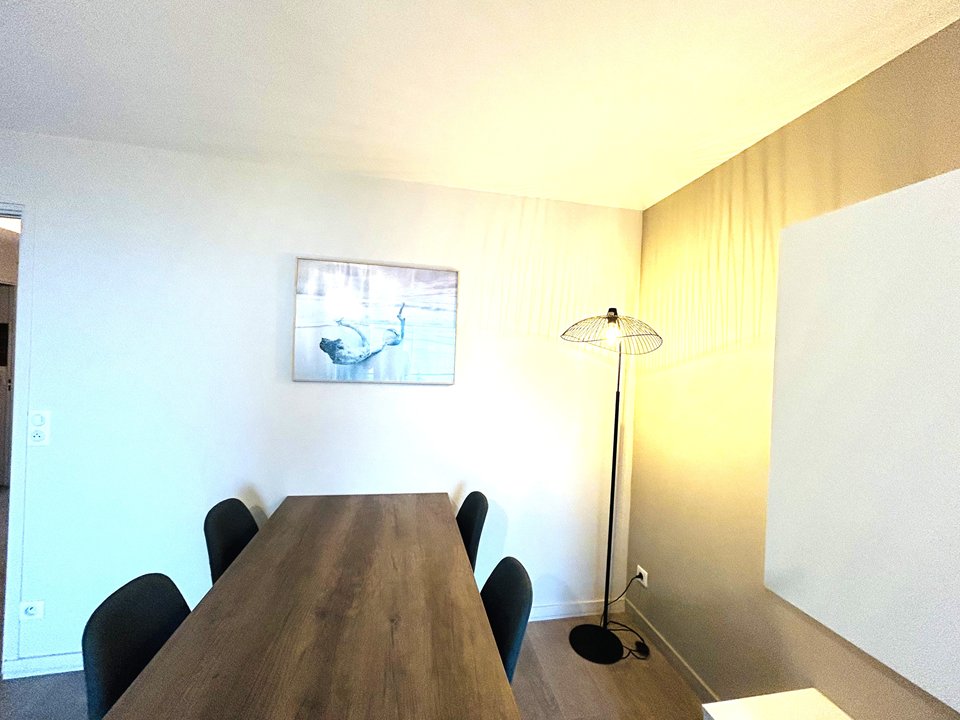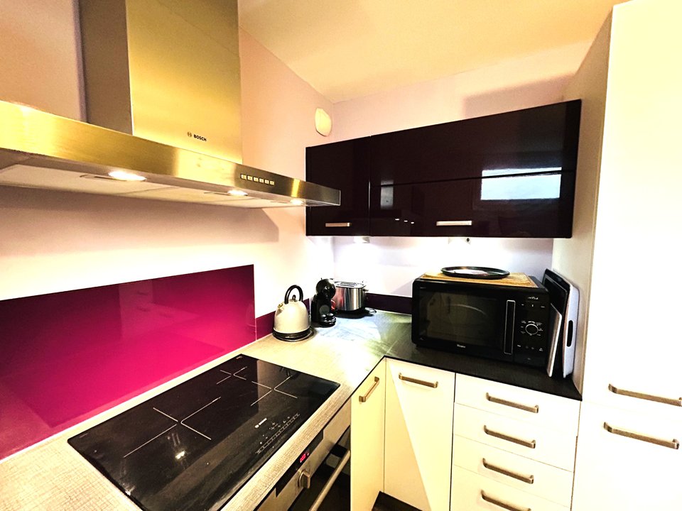 Equipement : Réfrigérateur avec partie congélateur, plaques de cuisson à induction, four micro-ondes, four électrique, lave-vaisselle, télévision, wifi, bouilloire électrique, grille-pain, cafetière électrique, cafetière à dosettes Dolce Gusto, sèche-cheveux, aspirateur, fer à repasser. Ascenseur